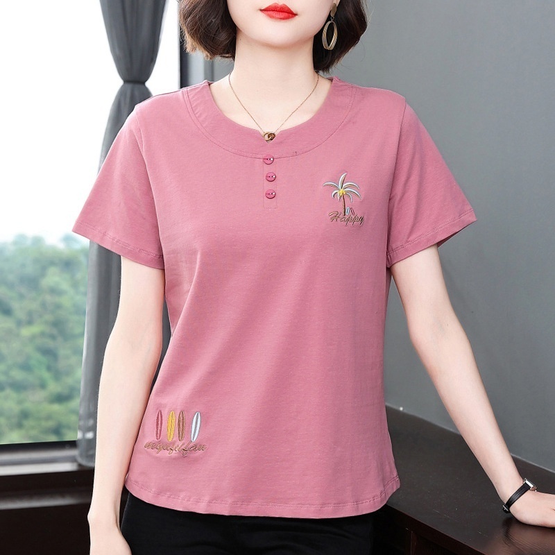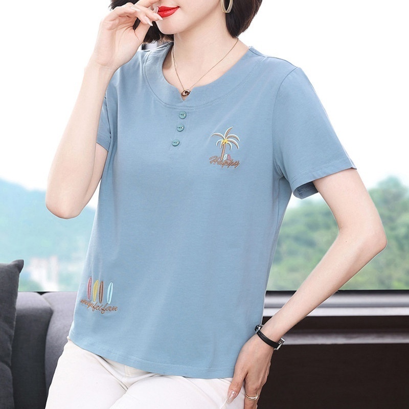 Mom's Short-sleeved T-shirt Women's Summer Age-reducing Cotton Clothes Half-sleeved Shirt Middle-aged And Elderly Loose Top