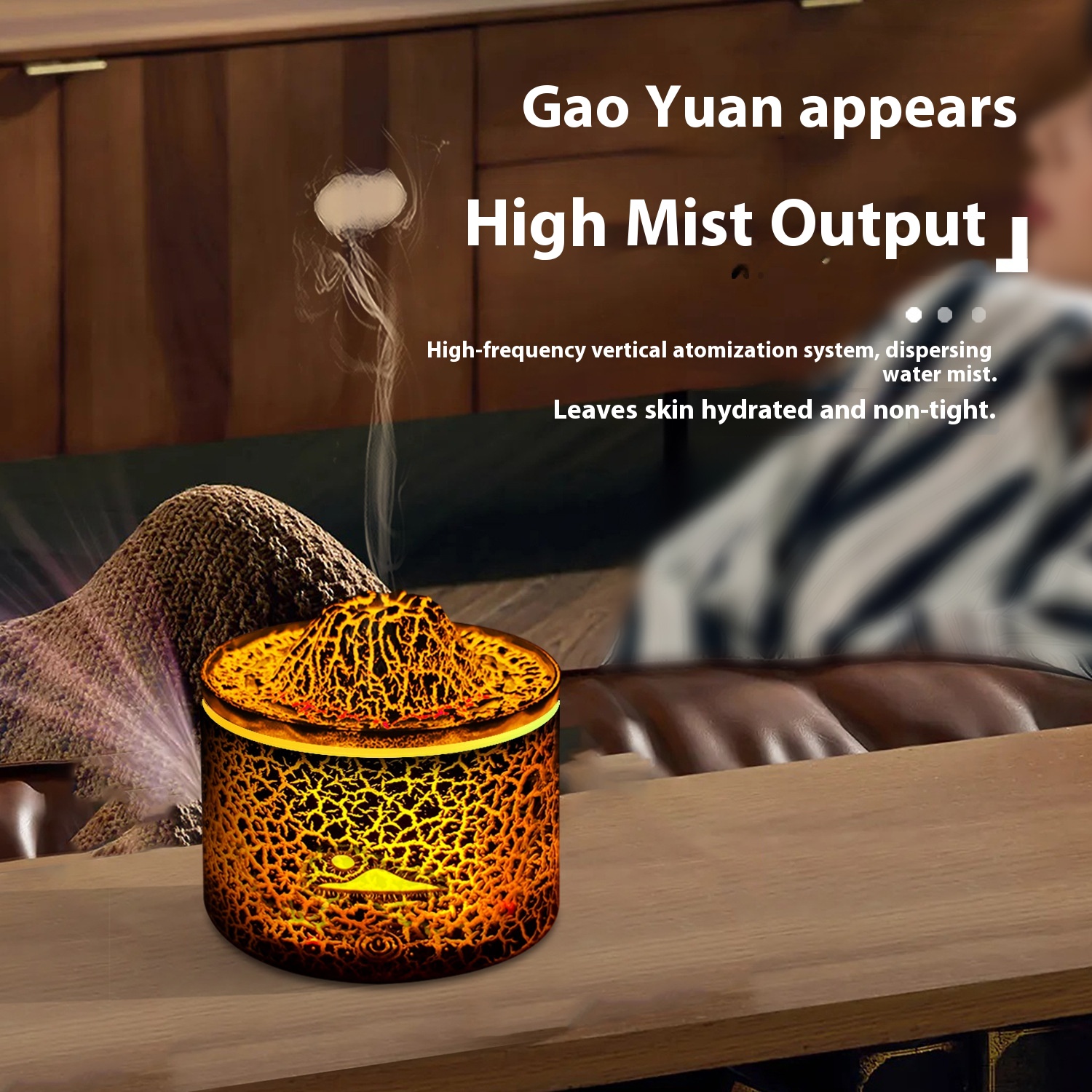 Lava Flame Crack Aromatherapy Machine Home Desktop Humidifier Heavy Mist Smoke Ring Spray Volcano Humidifier