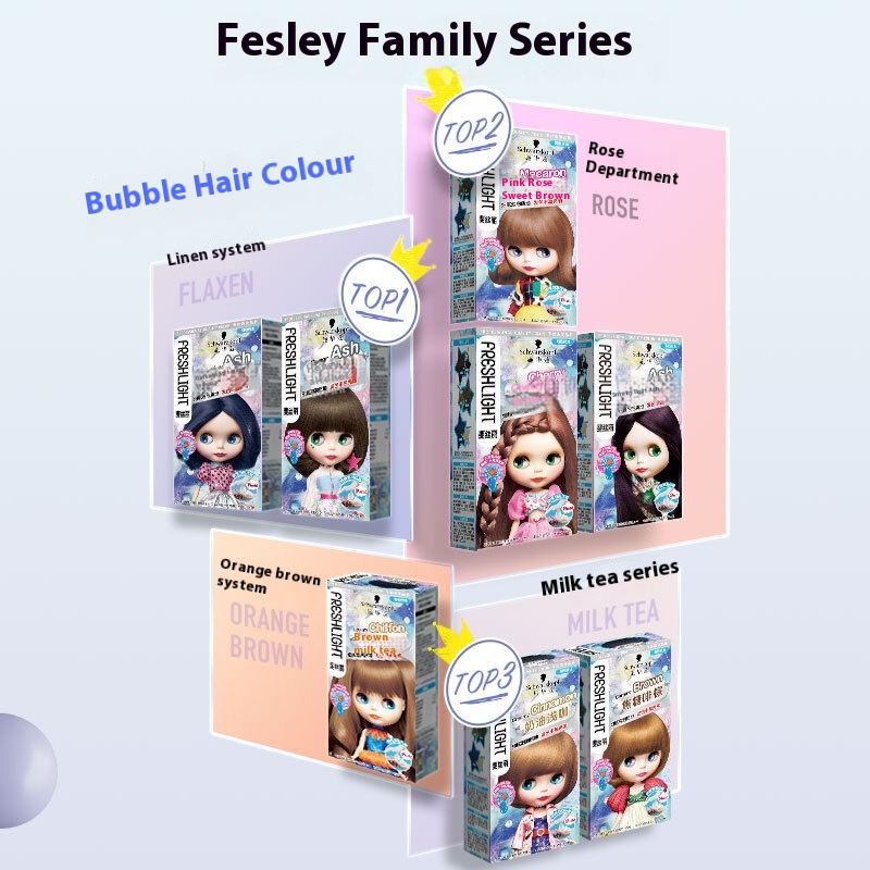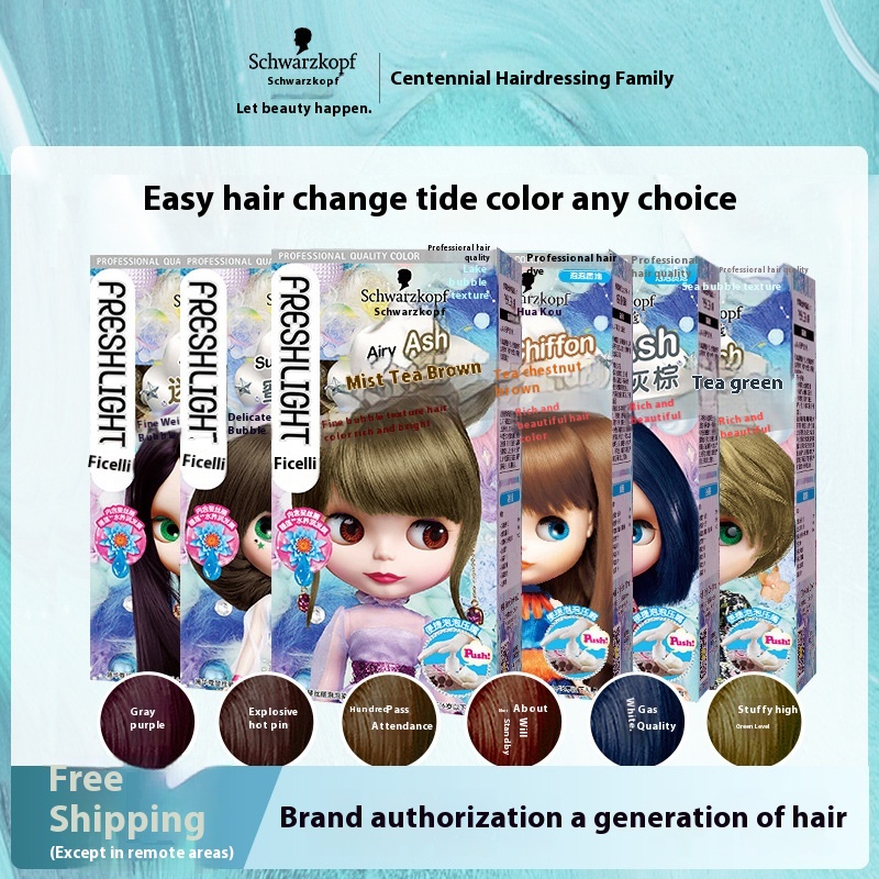 Schwarzkopf Feisili Amino Acid Bubble Hair Dye Emulsion Popular Whitening Linen Tea Dull Cyan Hair Dye Foam Cream