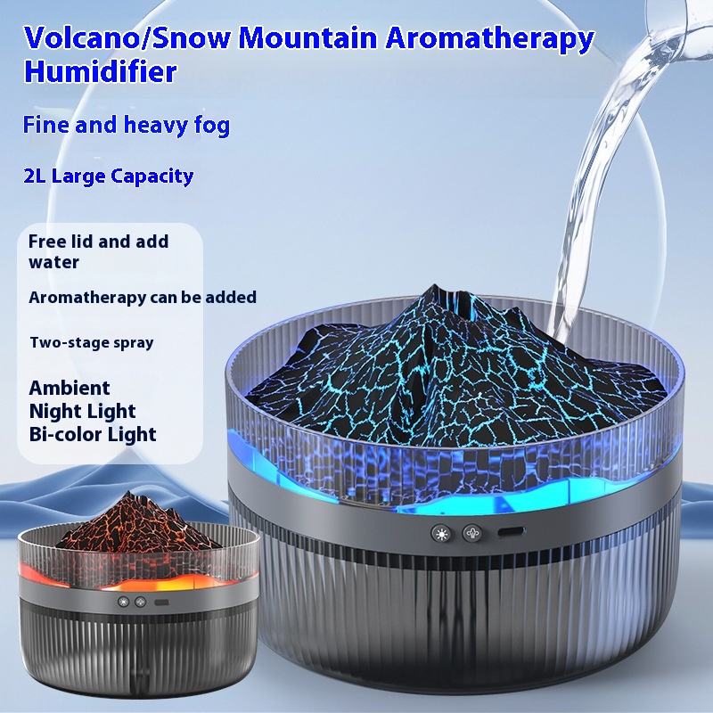 2L Volcano Aroma Diffuser Multifunctional Flame Humidifier Large Capacity Fog Diffuser