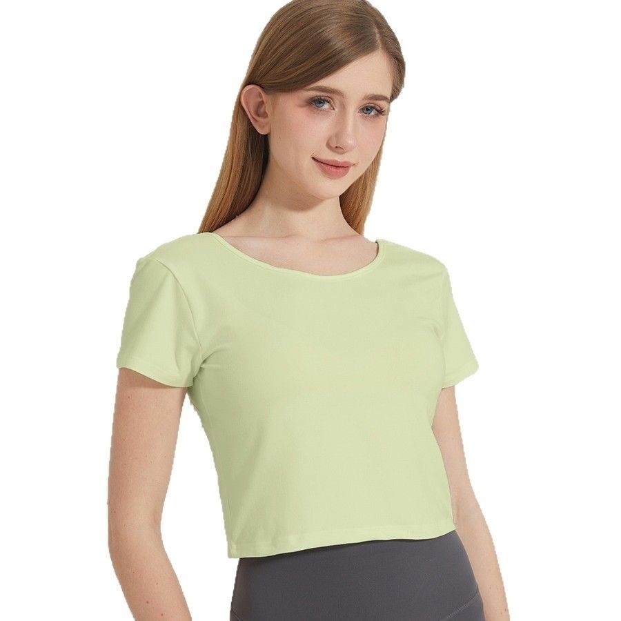 European And American Summer Round Neck Short-sleeved T-shirt High Elastic Comfortable Leisure Sports Slim-fit Slimming Beautiful Back Fitness