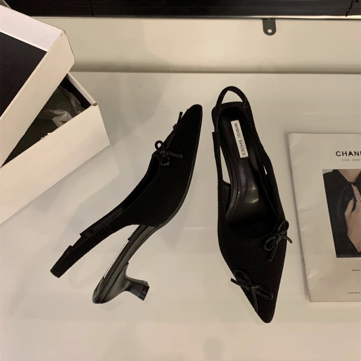 French Small High Heel Black Suede Toe Sandals Fairy Shoes Spring And Summer Elegant Ladies Shoes