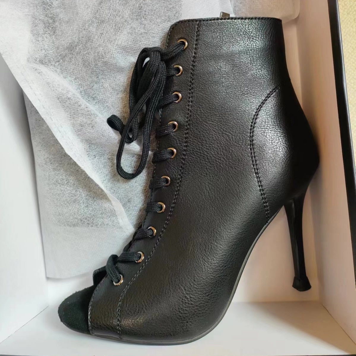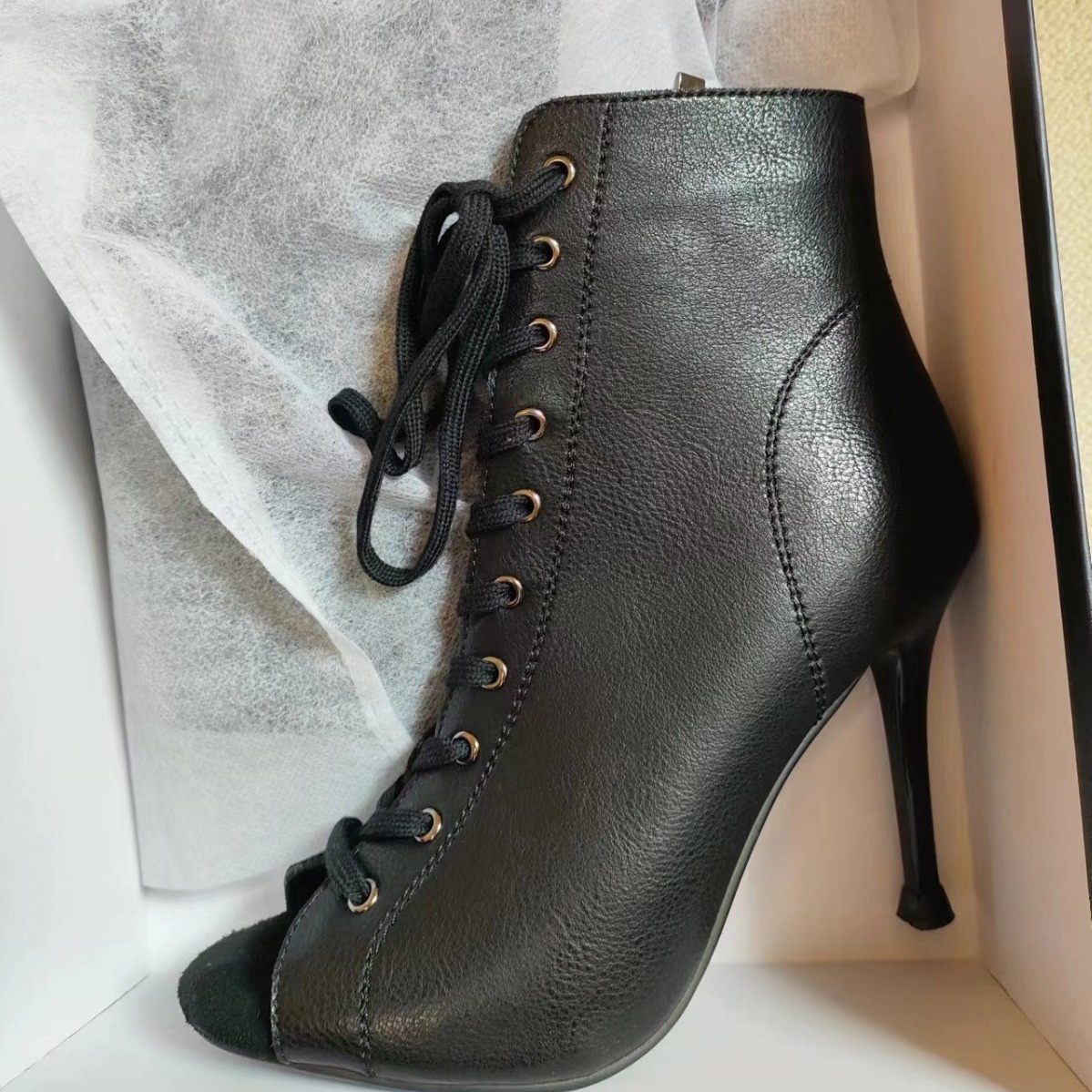European And American Lace-up Fish-toe Sandals Women's Summer Stiletto Hollow Short Boots Jazz Dance Dancing High Heels Sandals Large Size