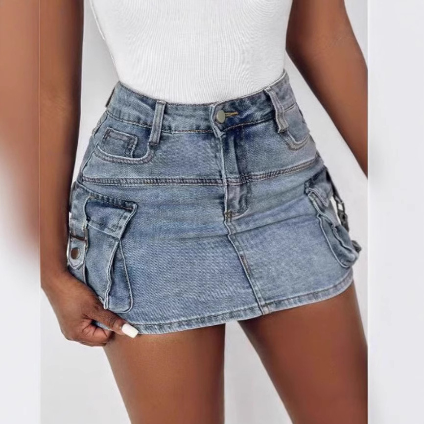 In Stock Denim Spice Girl Skirt Fashion Summer European And American Women's Workwear Pocket Skirt