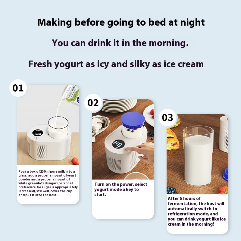 Automatic Home Use Glass Inner Barrel Yogurt Maker Ice Cream Freezer Cooling Refrigeration Fermentation Acid 500mL Below Capacity