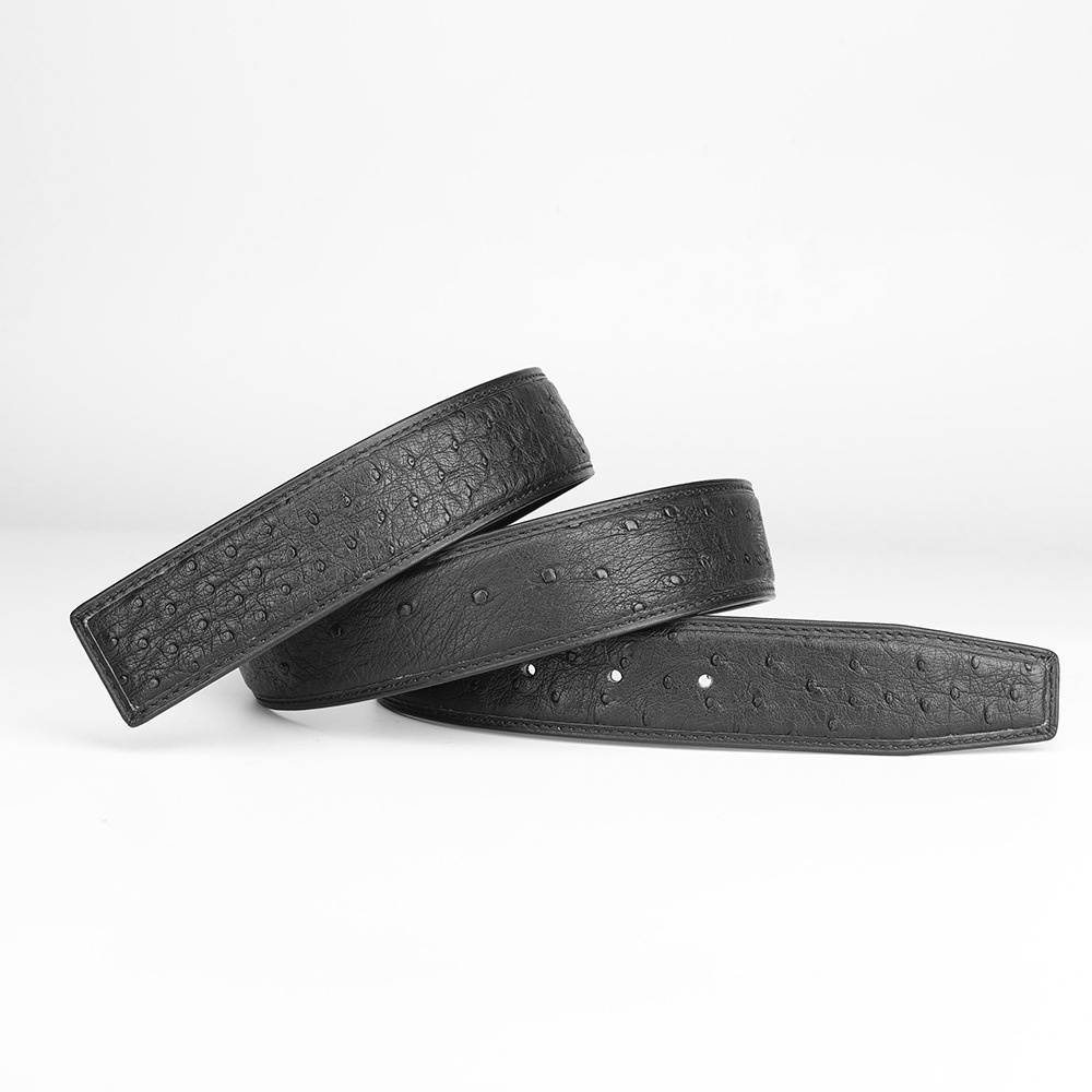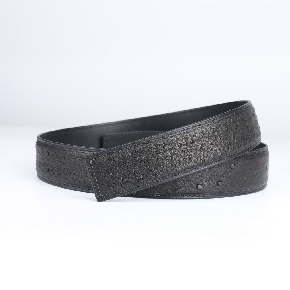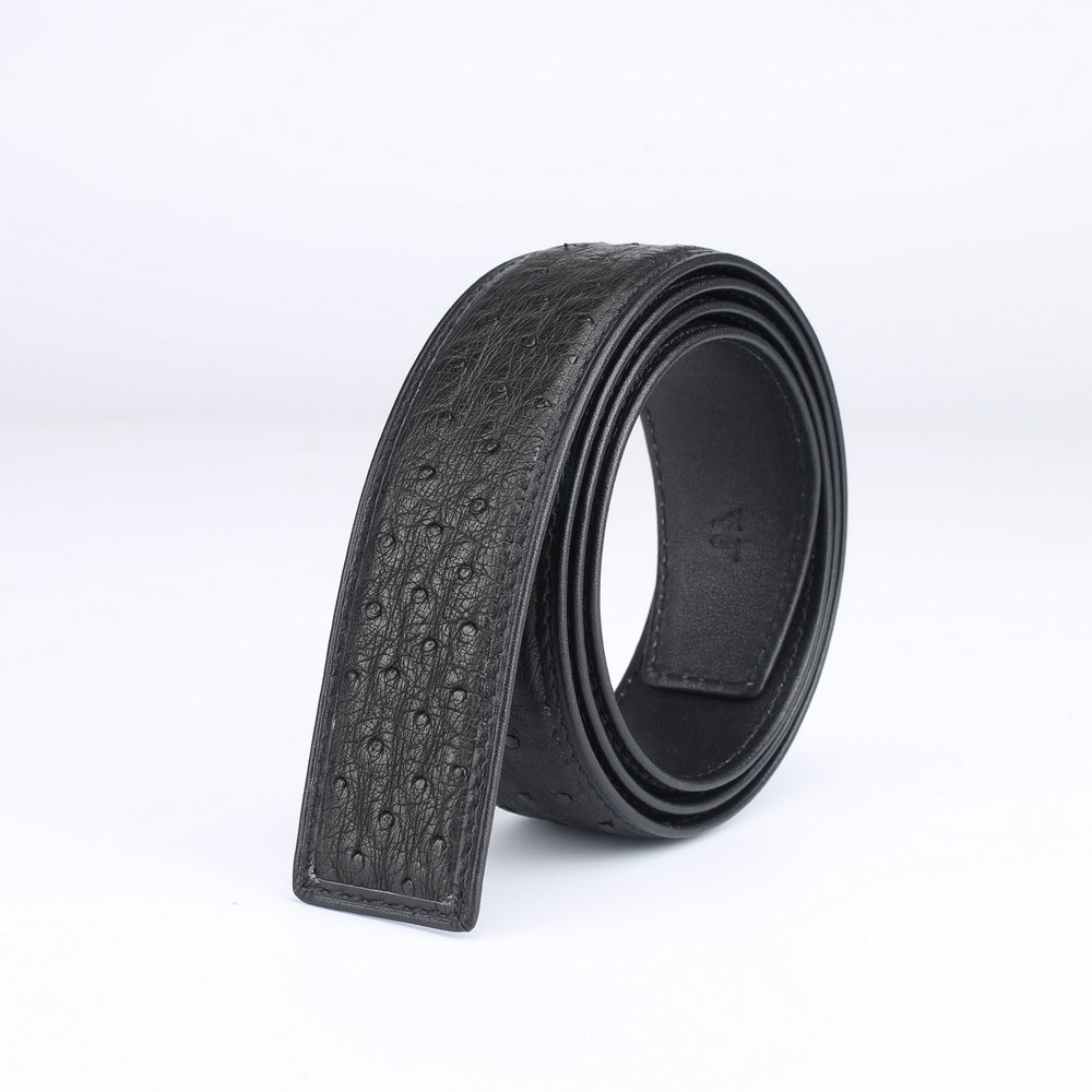 3.8cm Wide Ostrich Leather Belt Men's Leather Belt Pin Buckle Plate Buckle Headless Belt Body Leisure Belt