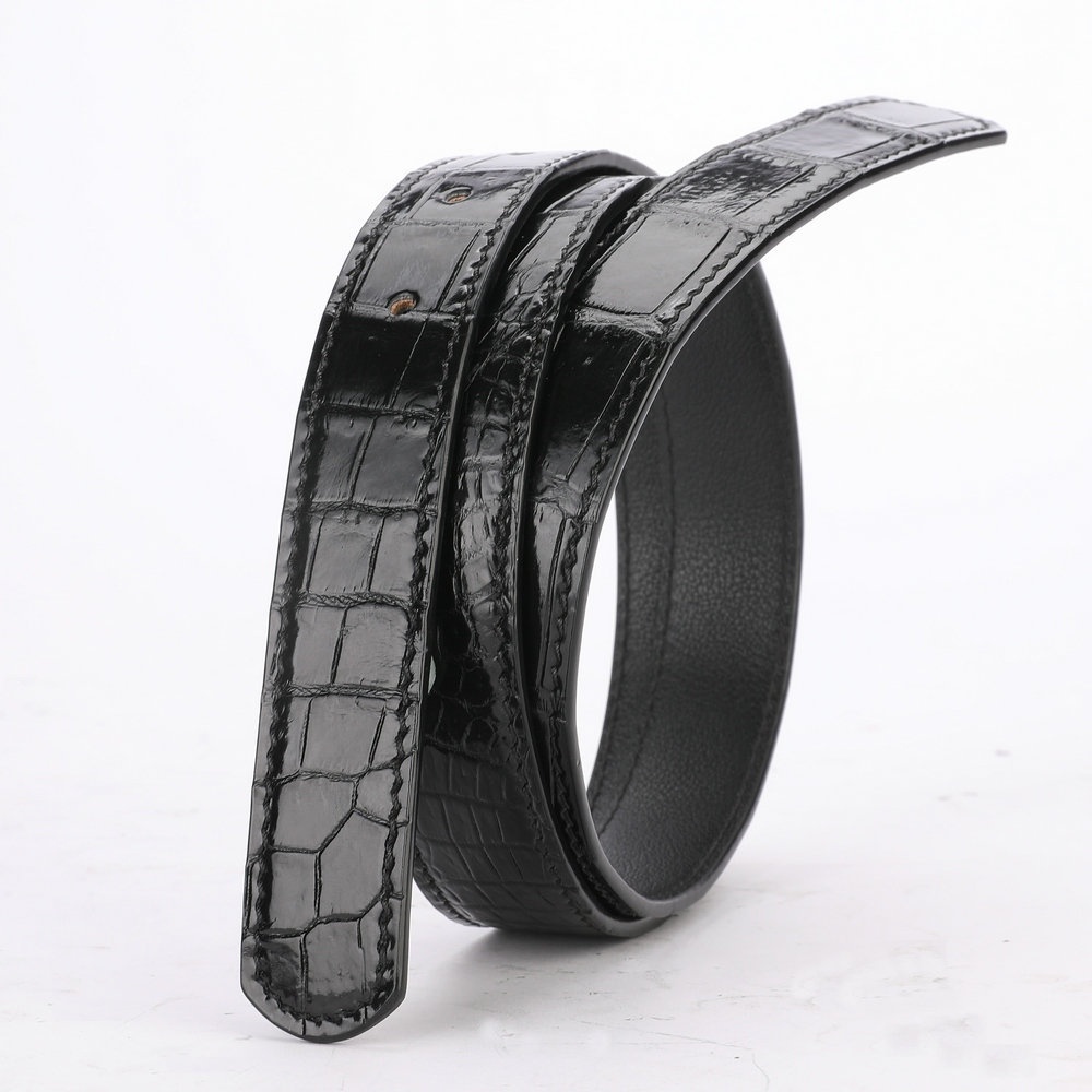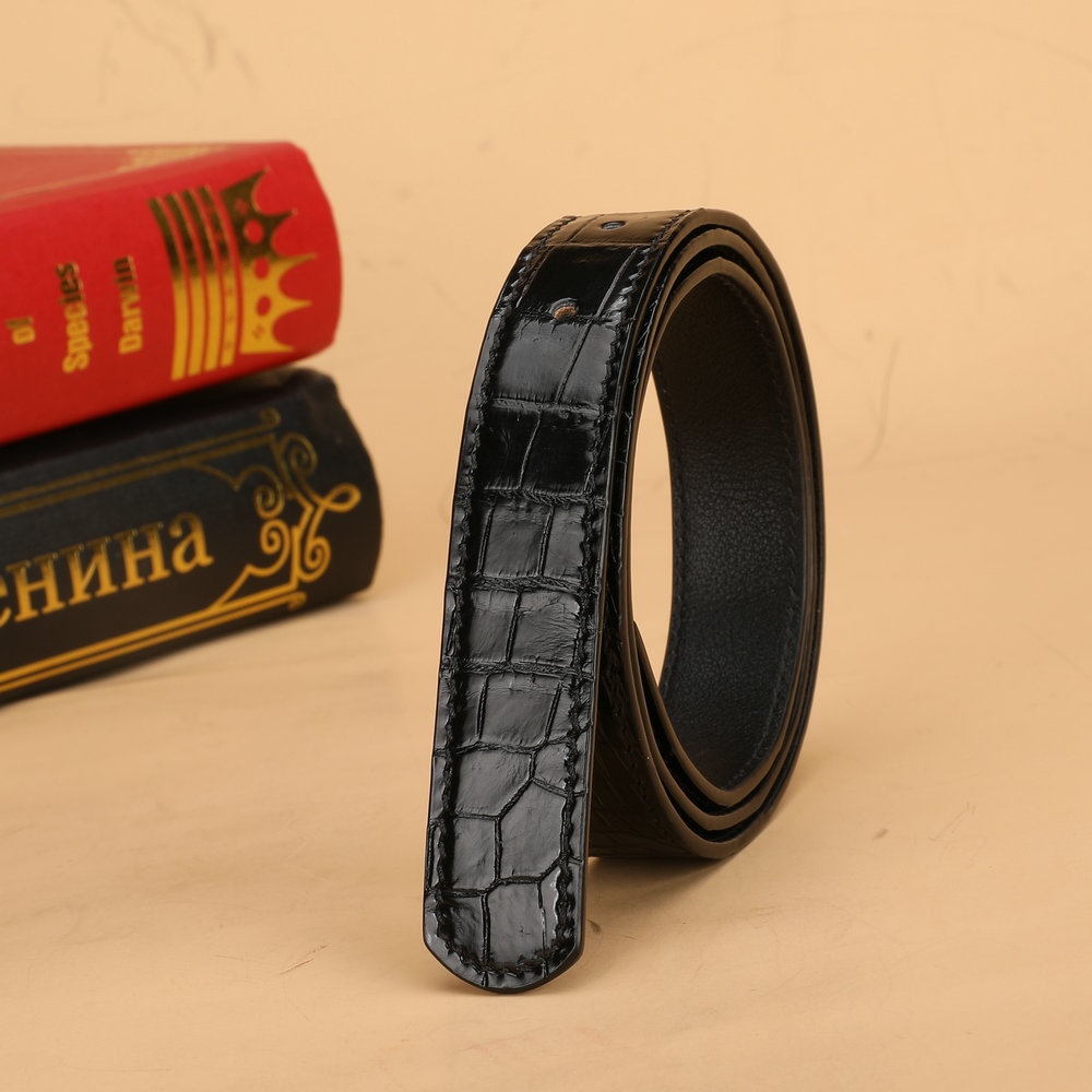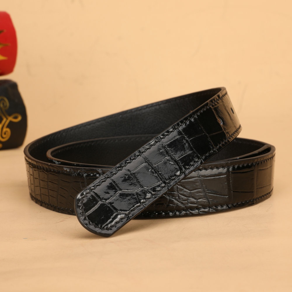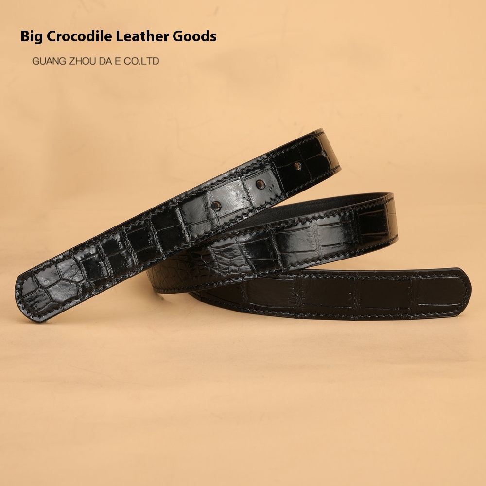 2.4cm Wide Women's Belt Siamese Crocodile Fish Leather Belt No Stitching Oil Edge Plate Buckle Pin Buckle Leather Belt