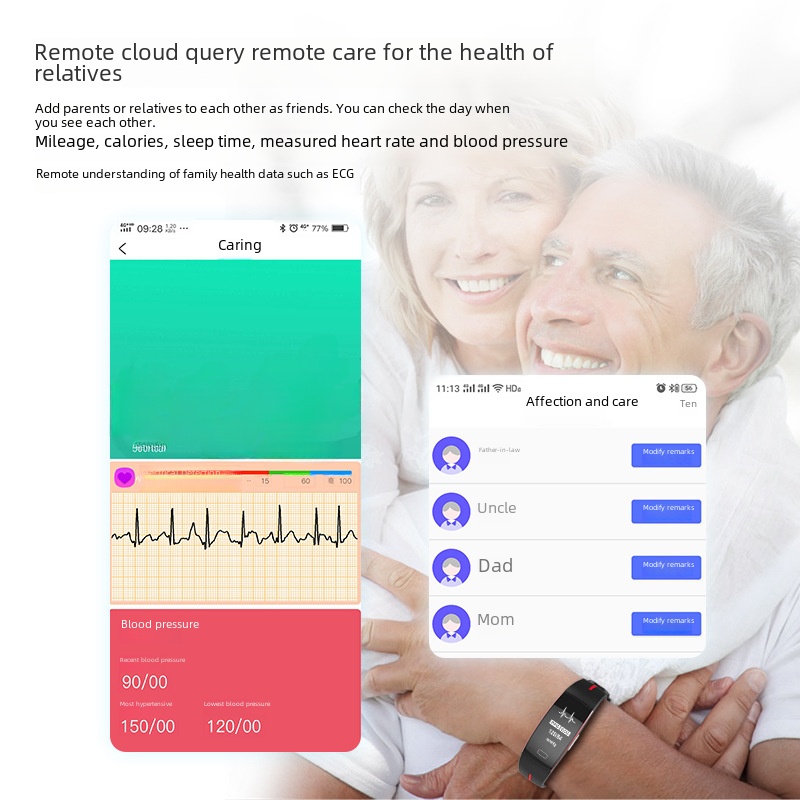 P3A Smart Bracelet 24H Continuous Monitoring Body Temperature Blood Pressure Heart Rate ECG Heart Rate Relatives Remote Care Table