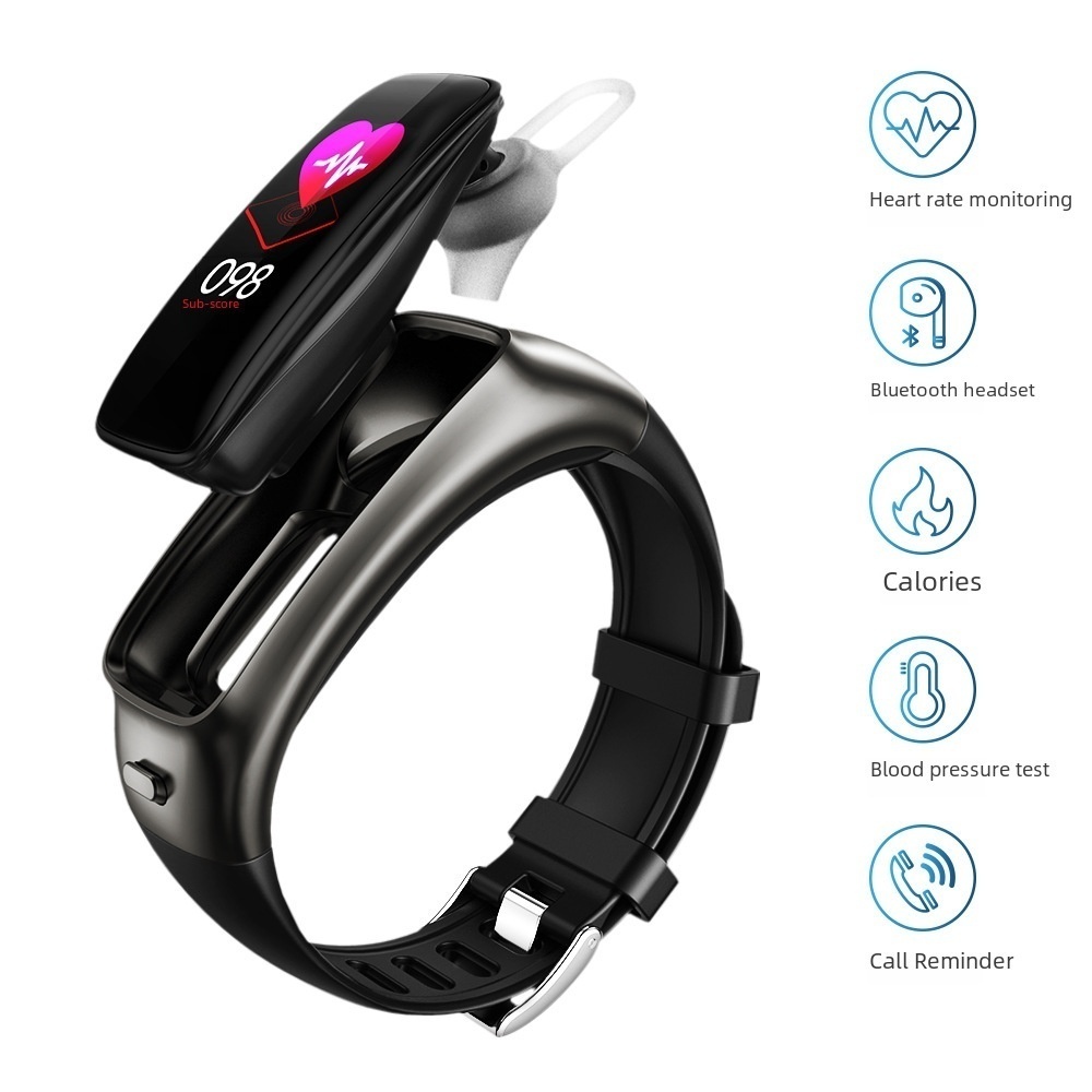 TB02 Smart Bracelet Exercise Pedometer Blood Pressure Heart Rate Sleep Bluetooth Music Headset 2-in -1 Call