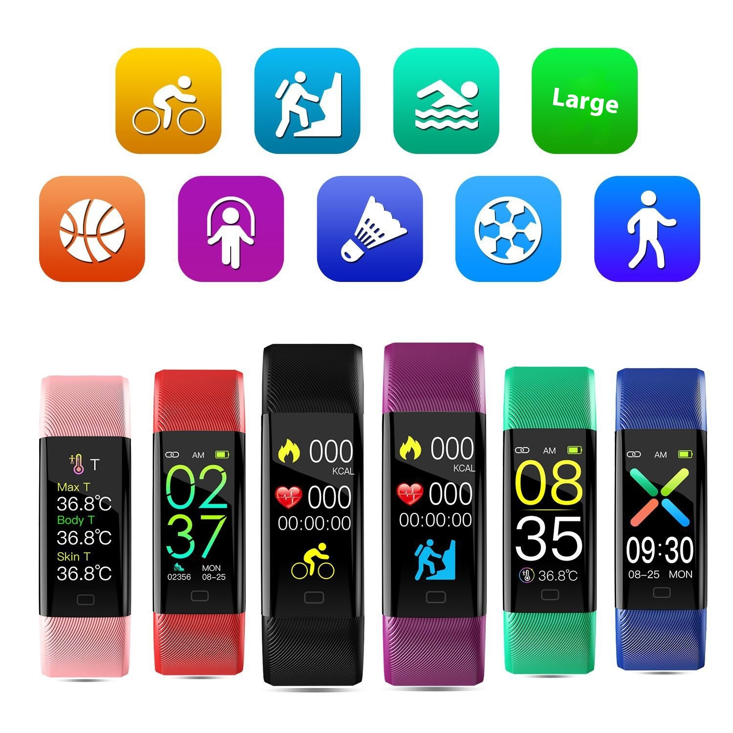 Exclusive F07t Smart Sports Bracelet Measuring Body Temperature Blood Pressure Fitness Heart Rate Meter Gift