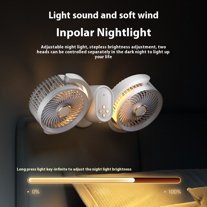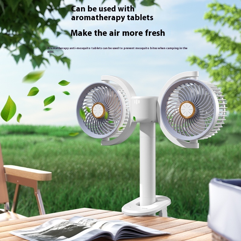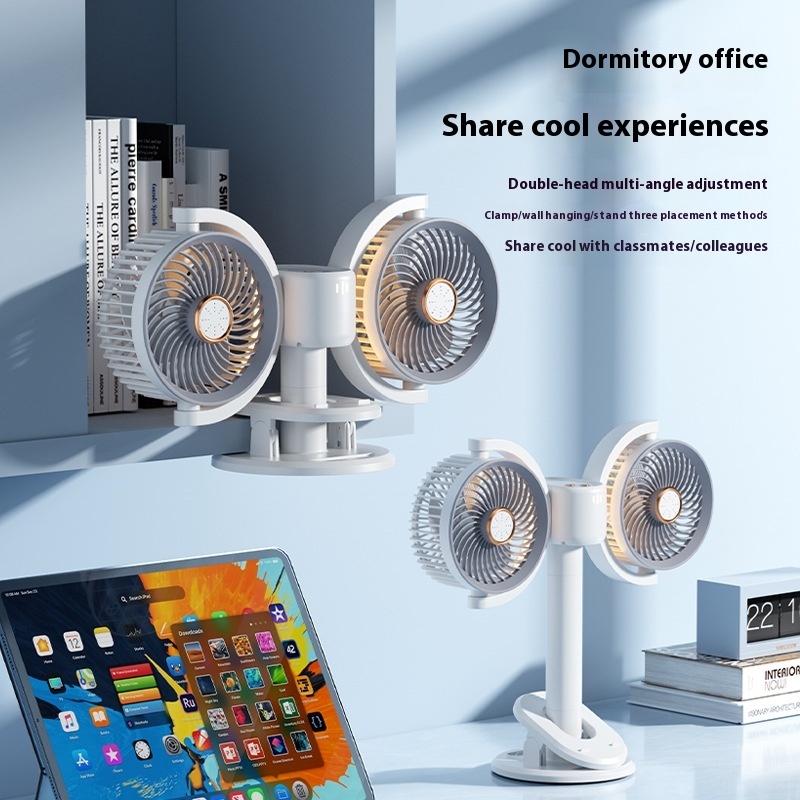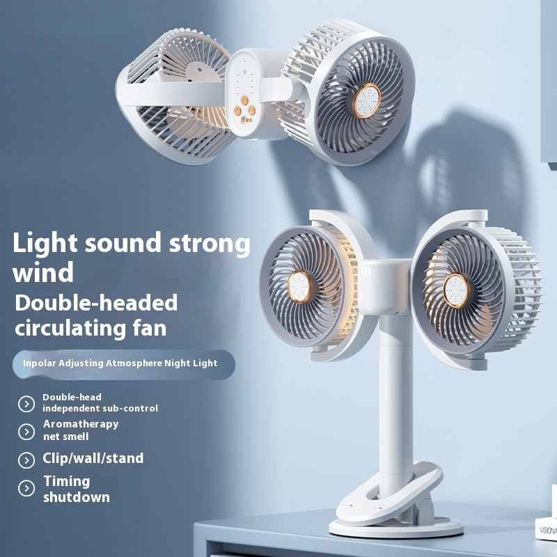 Double-head Circulating Fan Desktop Desktop Clip Fan Camping Fan Lights Can Be Timed Electric Fan Dormitory Wall-mounted Wind