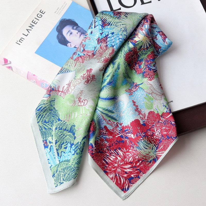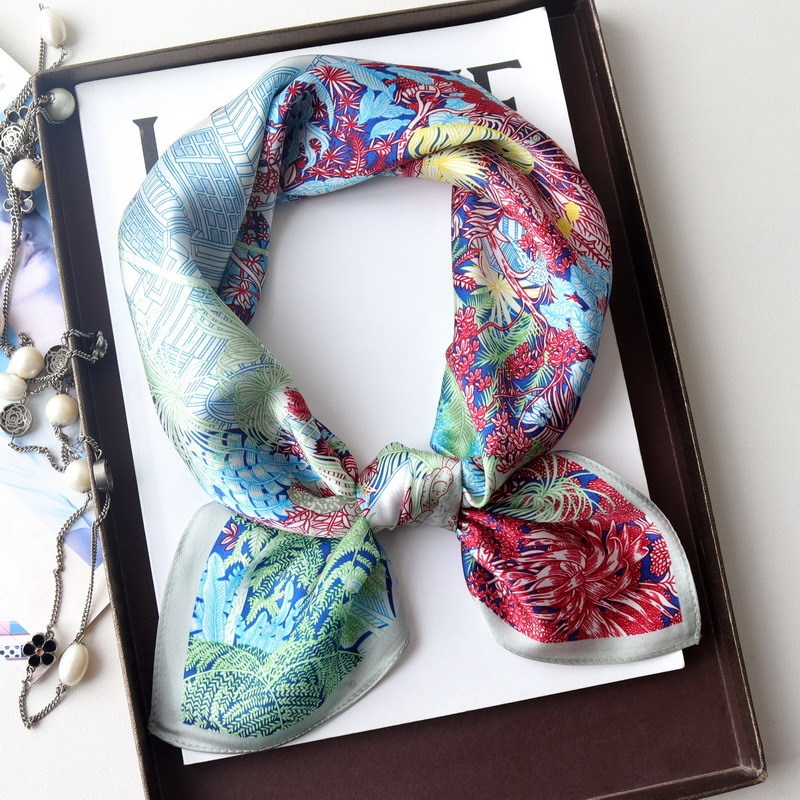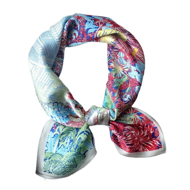European And American Temperament Fubao Rainforest Silk Satin 70 Chinese Square Scarf Mulberry Silk Scarf Small Fresh Versatile Multi-color