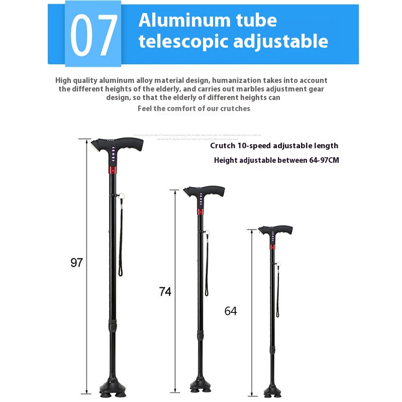 Elderly Crutches Non-slip Elderly Crutches With Lights Multifunctional Intelligent Automatic Alarm Crutches Four-legged Telescopic Stick