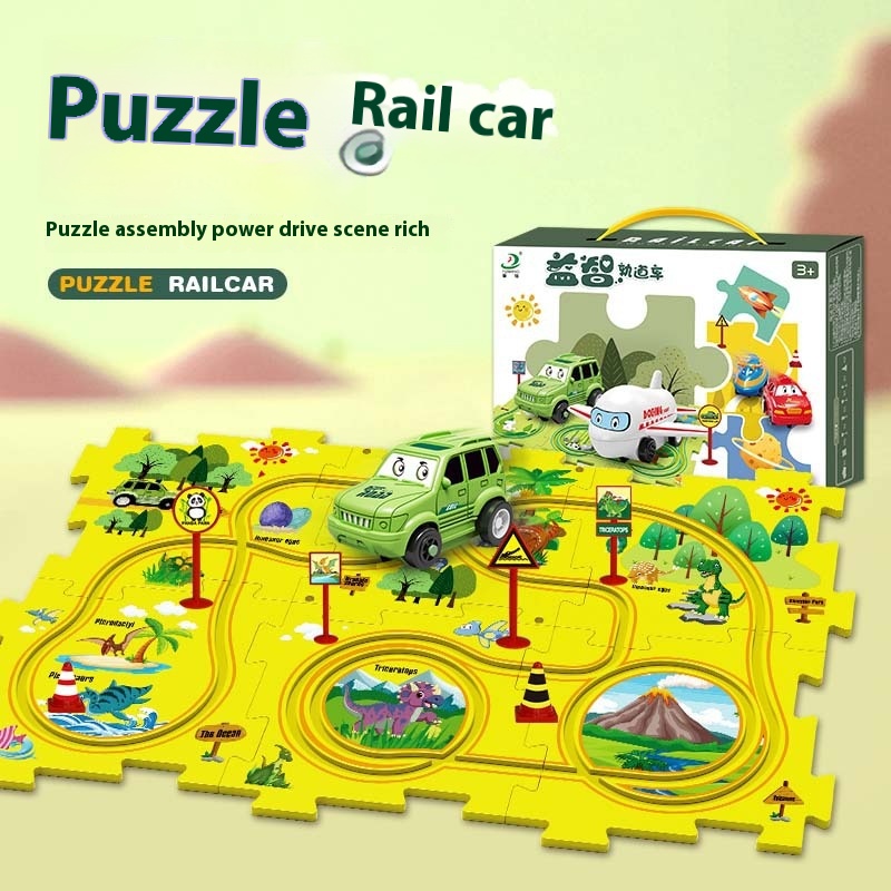 Children's Puzzle Jigsaw Railcar DIY Multifunctional Assembled Car Electric Toy Boy Birthday Gift 3-6 Years Old