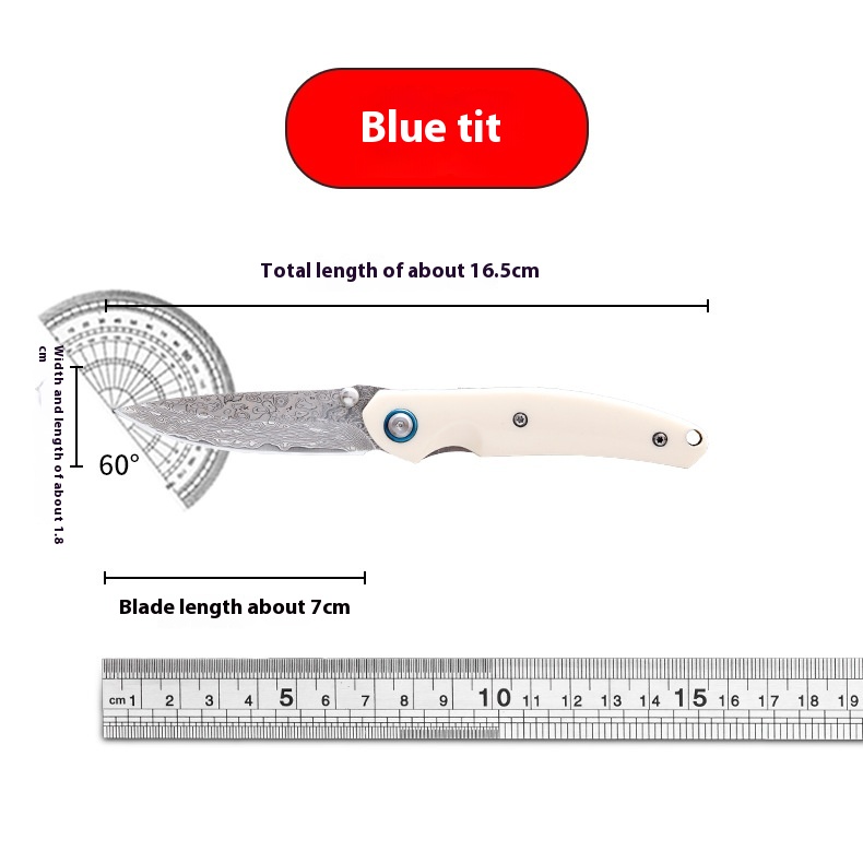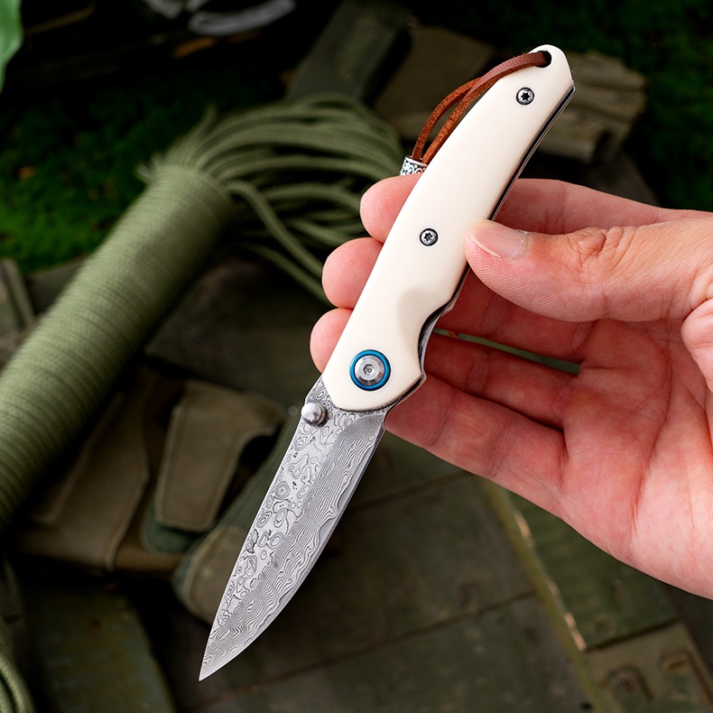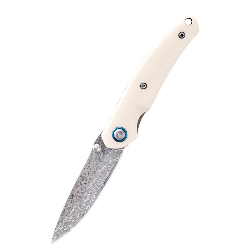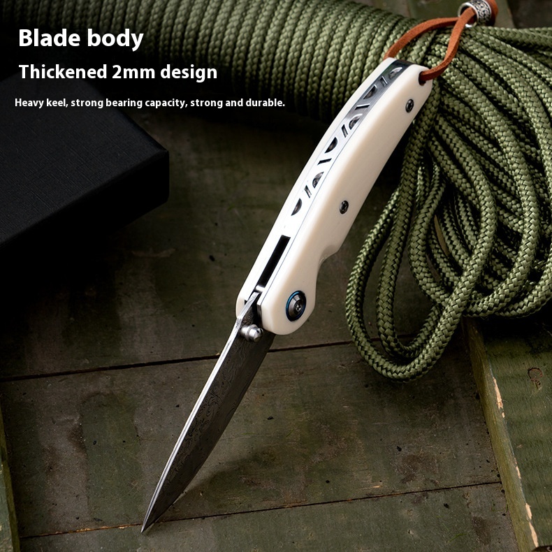Damascus Steel Folding Knife Imitation Cattle Bone Handle Outdoor Knife Multifunctional Fruit Knife Portable Knife