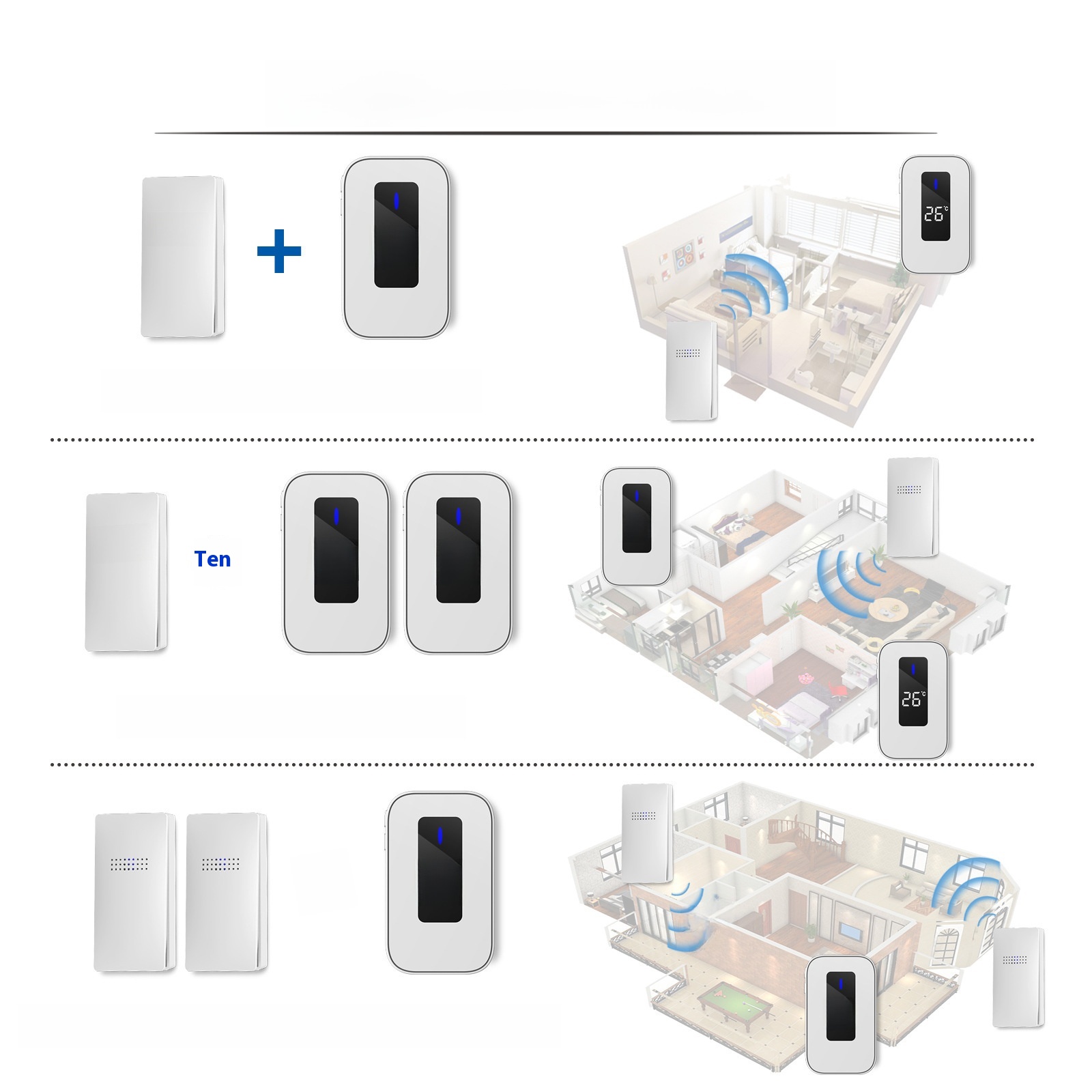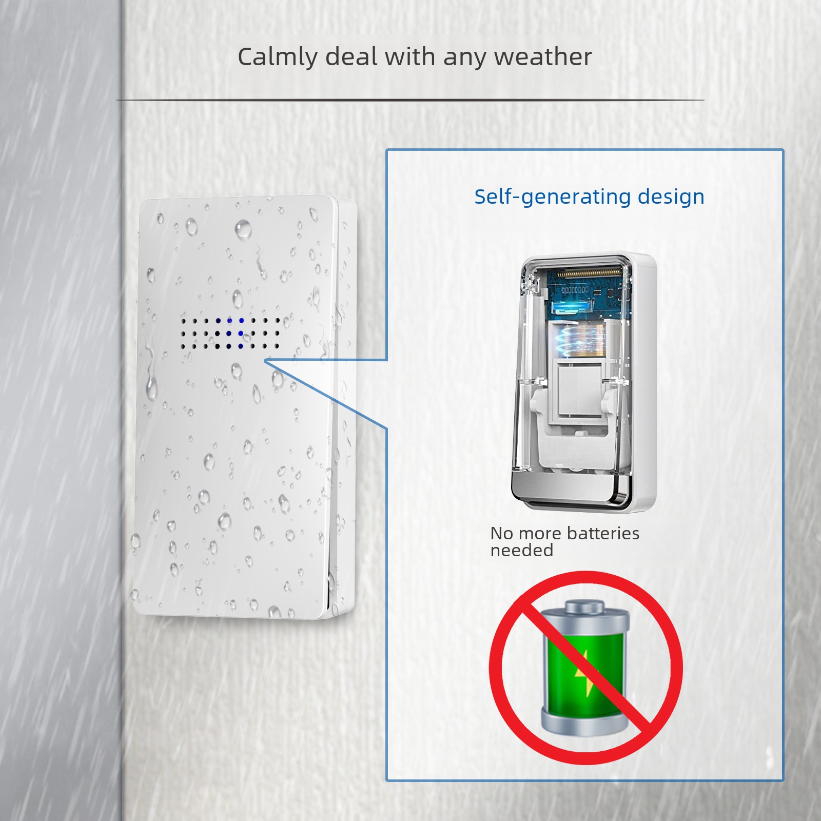 Self-generating Household Wireless Waterproof Doorbell CE Certification Temperature Intelligent Display Battery-free Wireless Pager