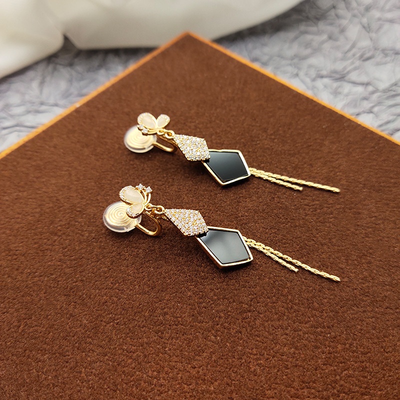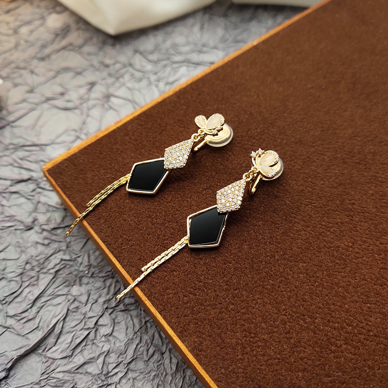 Niche Unique Long Tassel Diamond Ear Clip Elegant Earrings Women's High-end Light Luxury Earrings Without Ear Holes