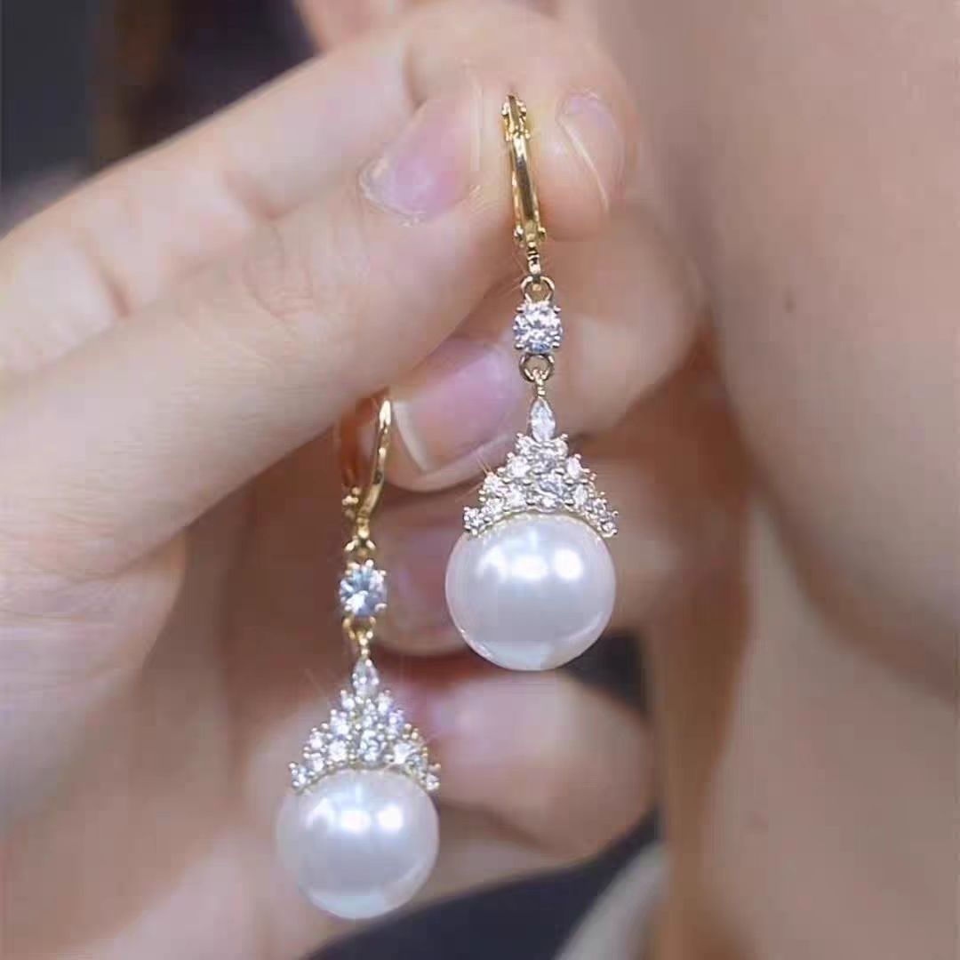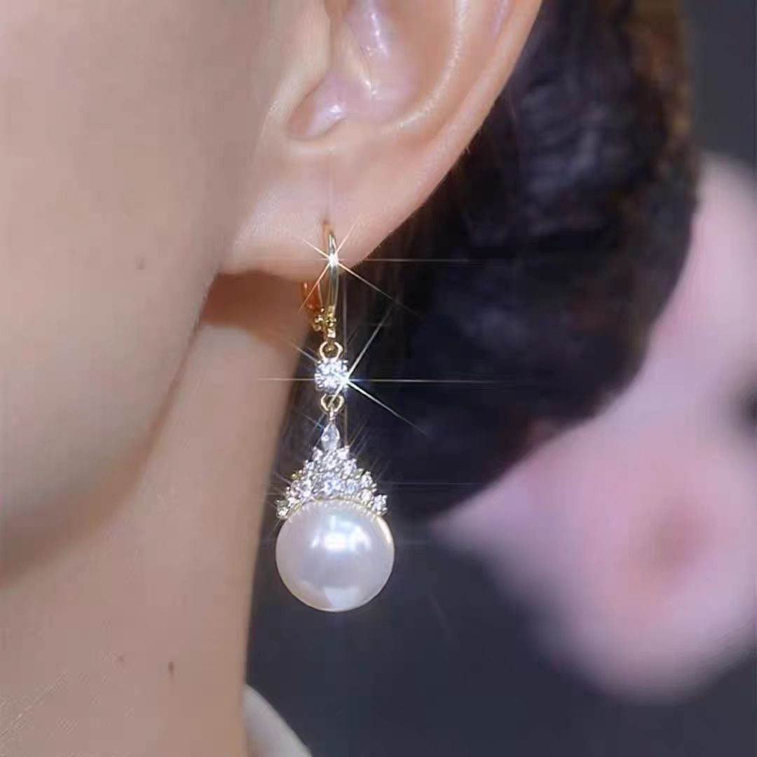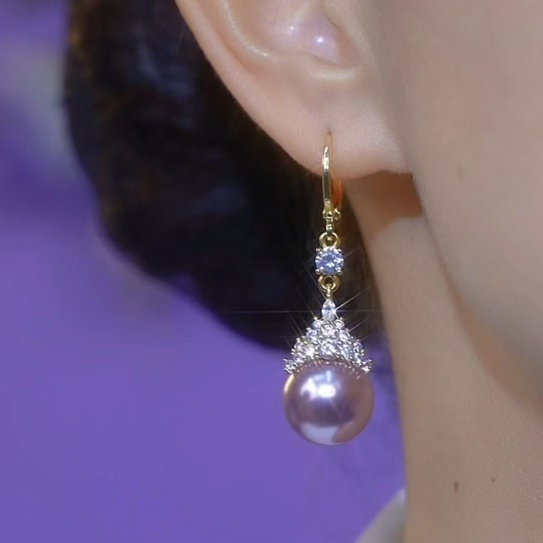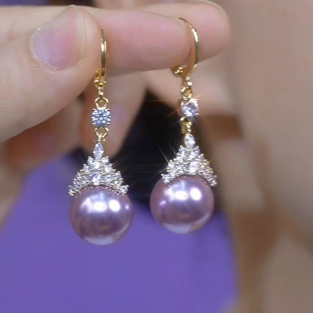 Light Luxury High-end Sense Micro-inlaid Queen Purple Pearl Earrings Style Exquisite Earrings Women's All-match Luxury Earrings