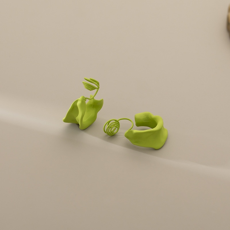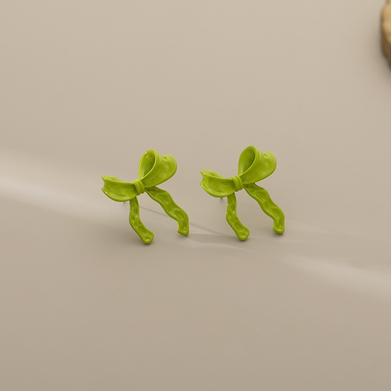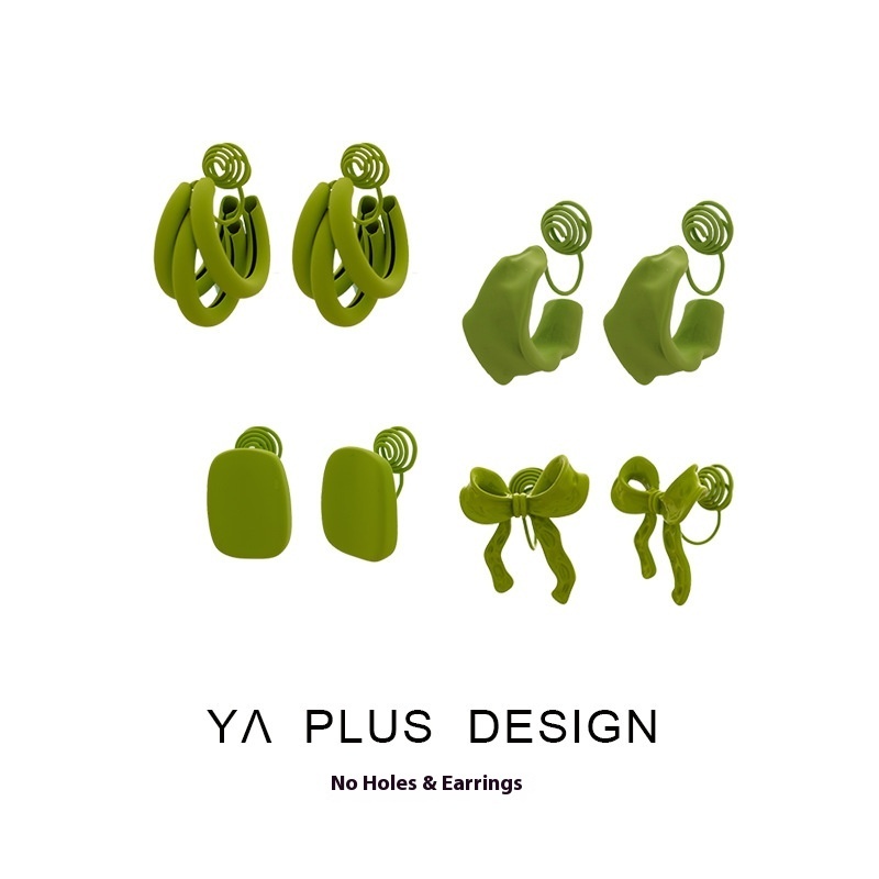 Small Fresh Green Bow Geometric Earrings Without Ear Holes All-match Style Explosive Design Mosquito Coil Ear Clip