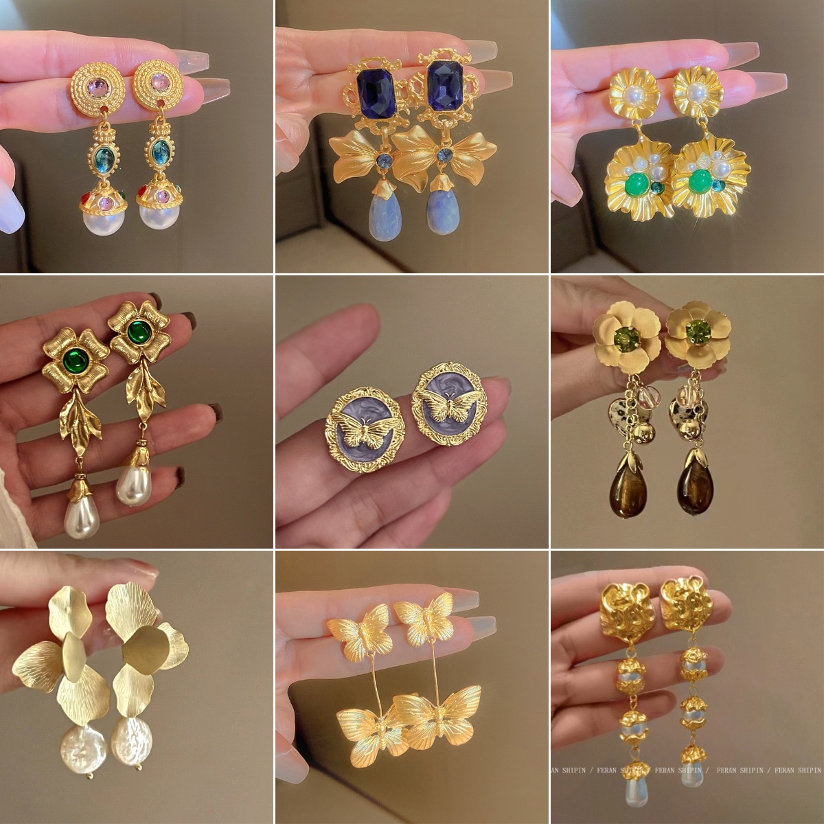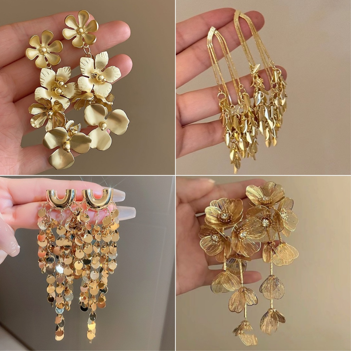 Advanced Metal Flower Butterfly Tassel Earrings Retro Exaggerated Design Temperament Earrings Niche Fashion Earrings