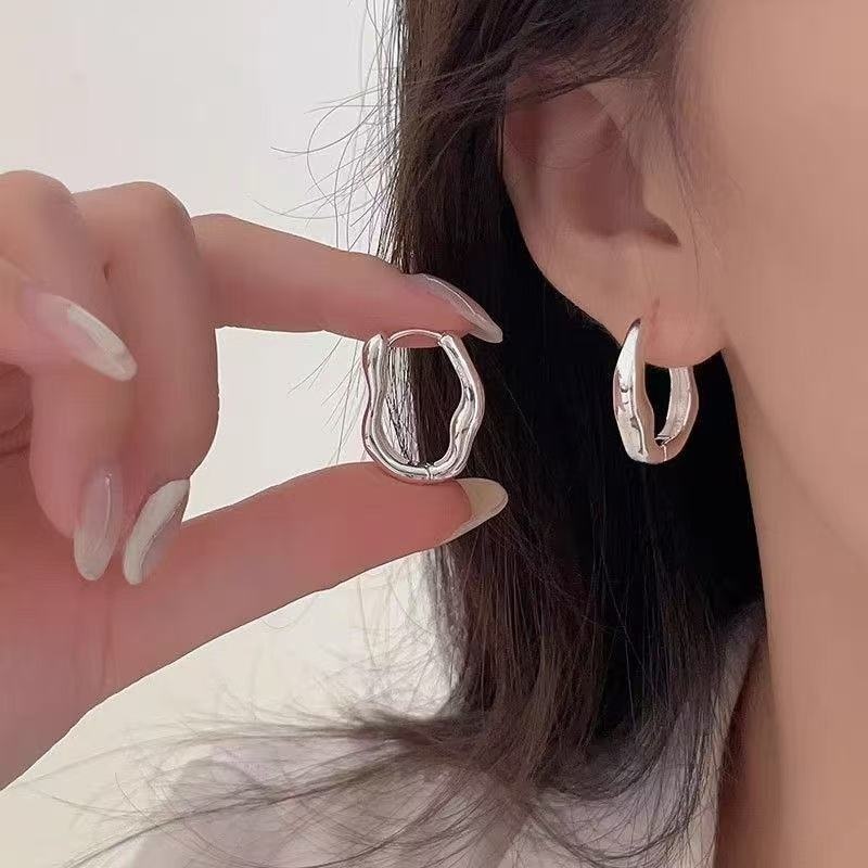 S925 Silver Irregular Geometric Earrings Women's Y Simple Earrings Elegant All-match Geometric U-shaped Personality Earrings