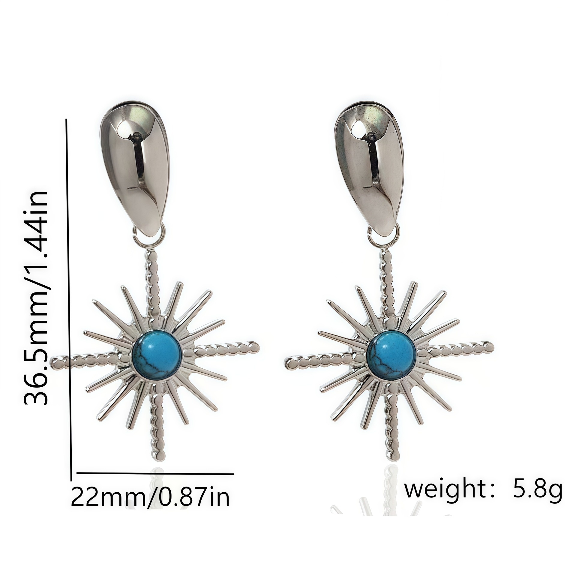 European And American Light Luxury High-grade Titanium Steel Gold-plated Anti-allergy Non-fading Water Droplets Turquoise Earrings Pendant