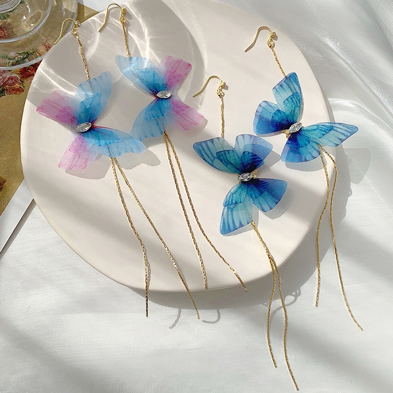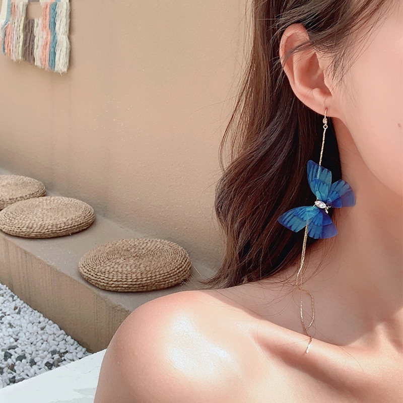 Arrival Y Earrings Simple Blue Butterfly Elegant Tassel Long Design Ear Drop Fairy Tulle Earrings