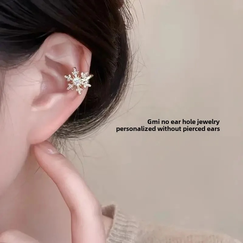 Exquisite And Small Snowflake Ear Bone Clip Without Ear Holes Ear Clip Earrings Women's Light Luxury Niche Design Sense Internet Popular Earrings