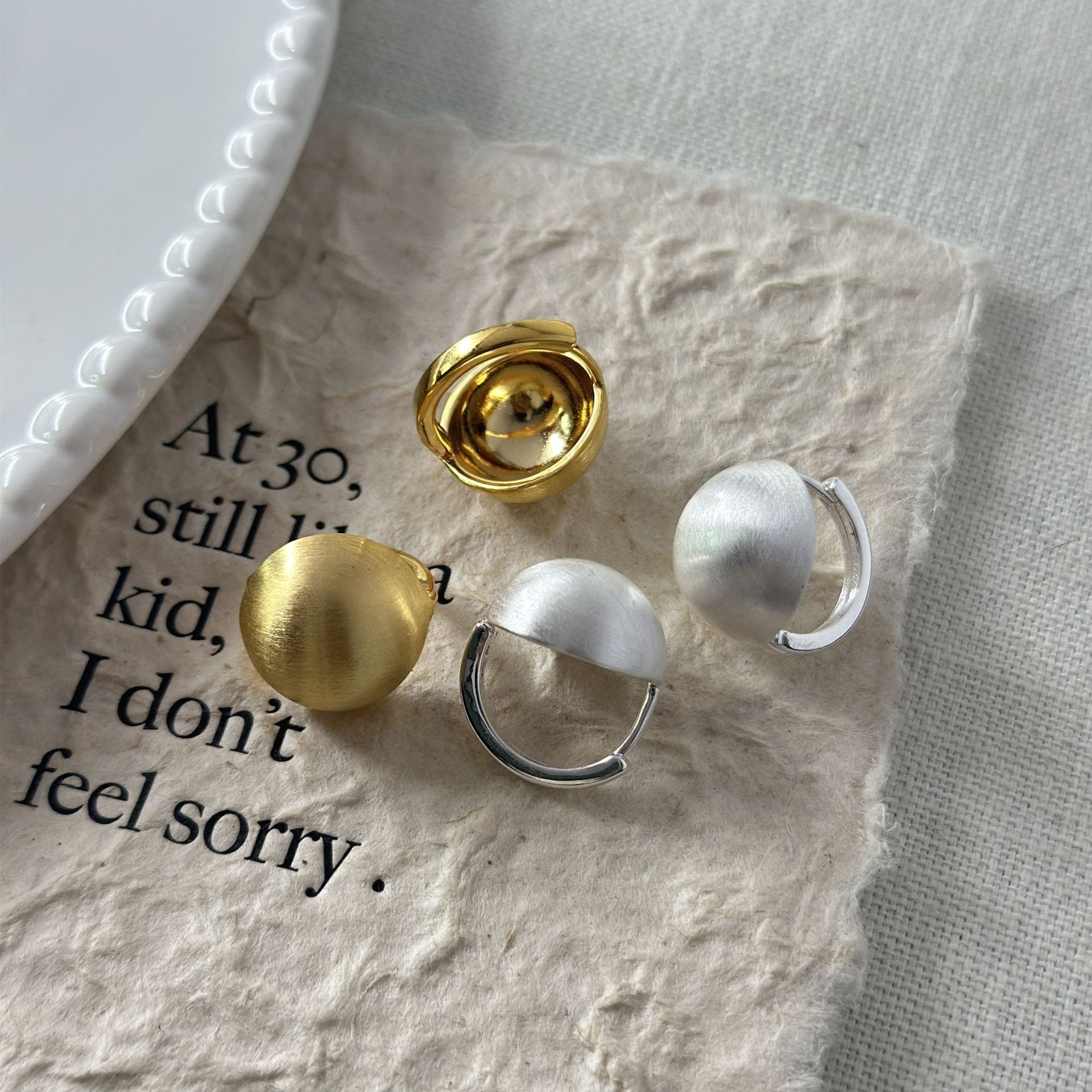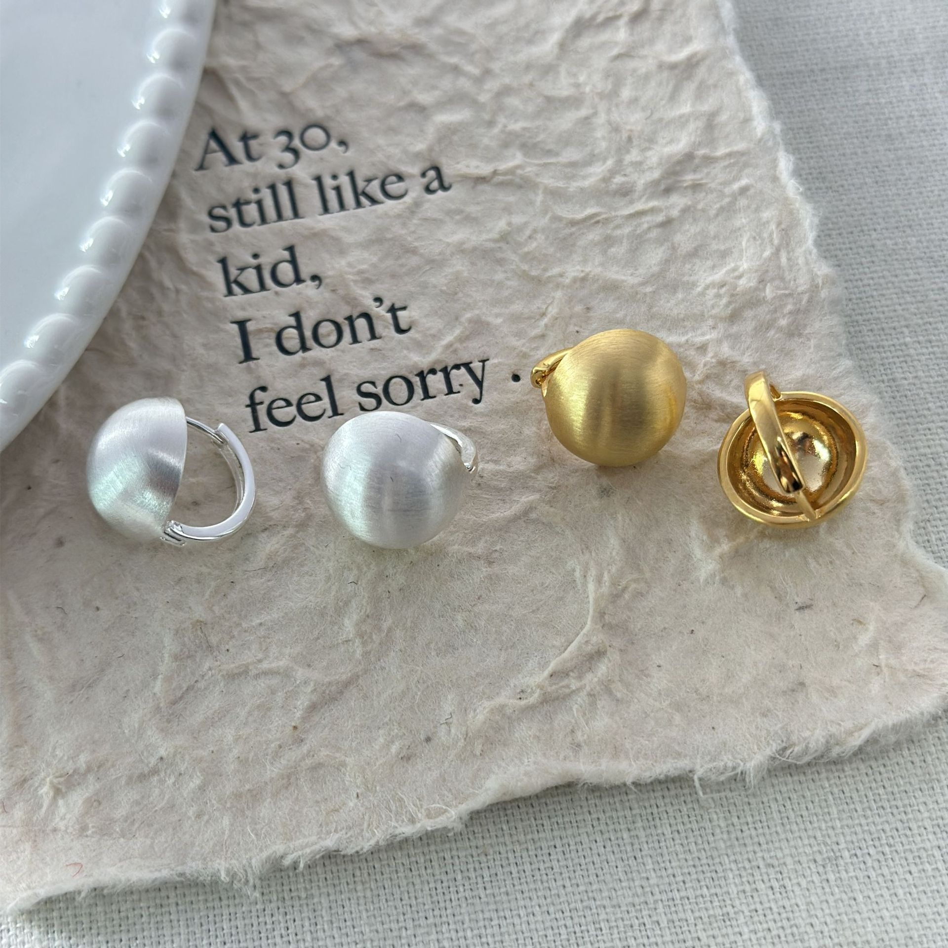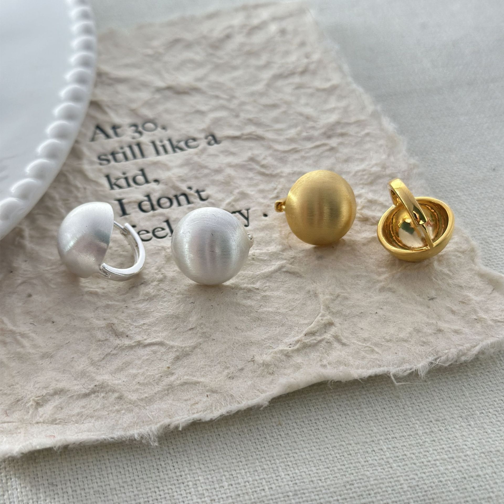 Metal Brushed Earrings Round Ball Earrings Niche Design Earrings Spring And Summer Commuting All-match Daily Metal Earrings Women