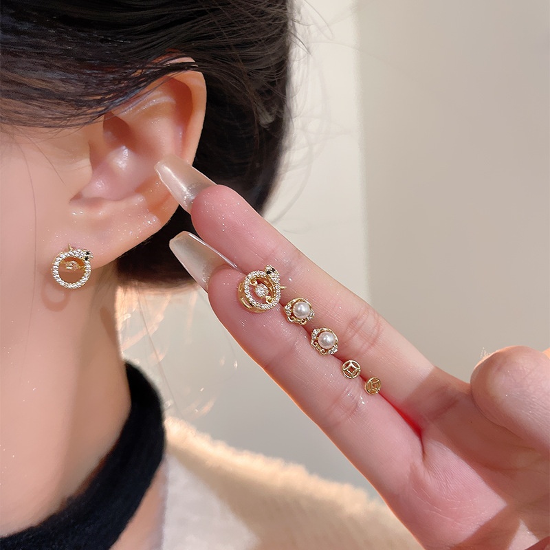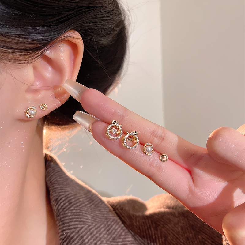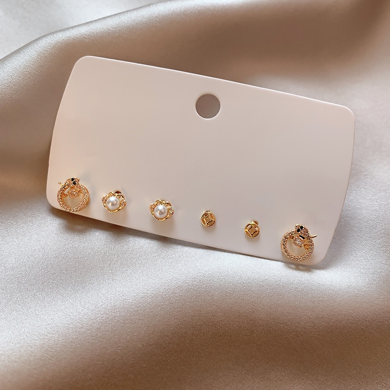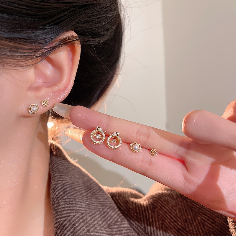 Fortune-making Imitation Pearl Studded Snake Earrings Suit Women's Light Luxury Niche Earrings High-end Simple All-match Earrings