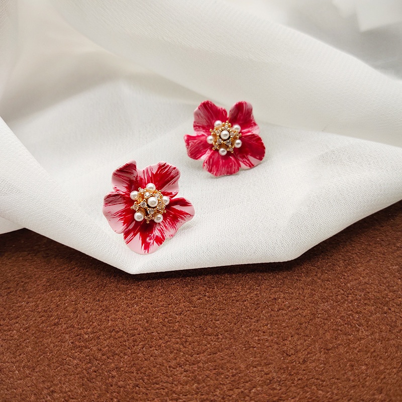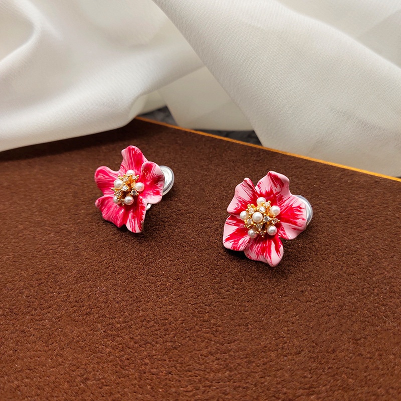 Ear-free Flower Ear Clip Niche Light Luxury High-end Ancola Red Earrings Elegant Earrings For Women