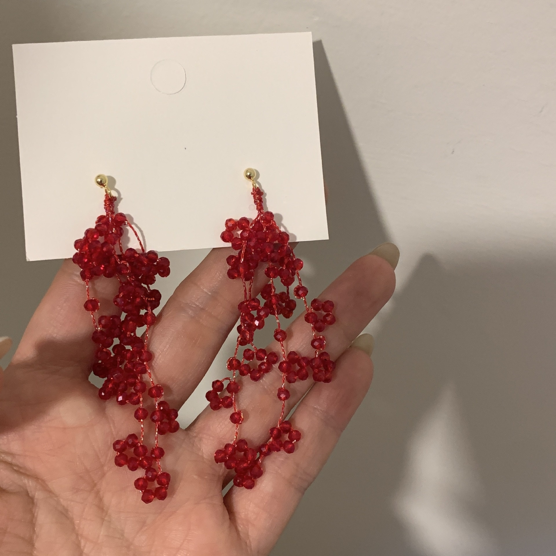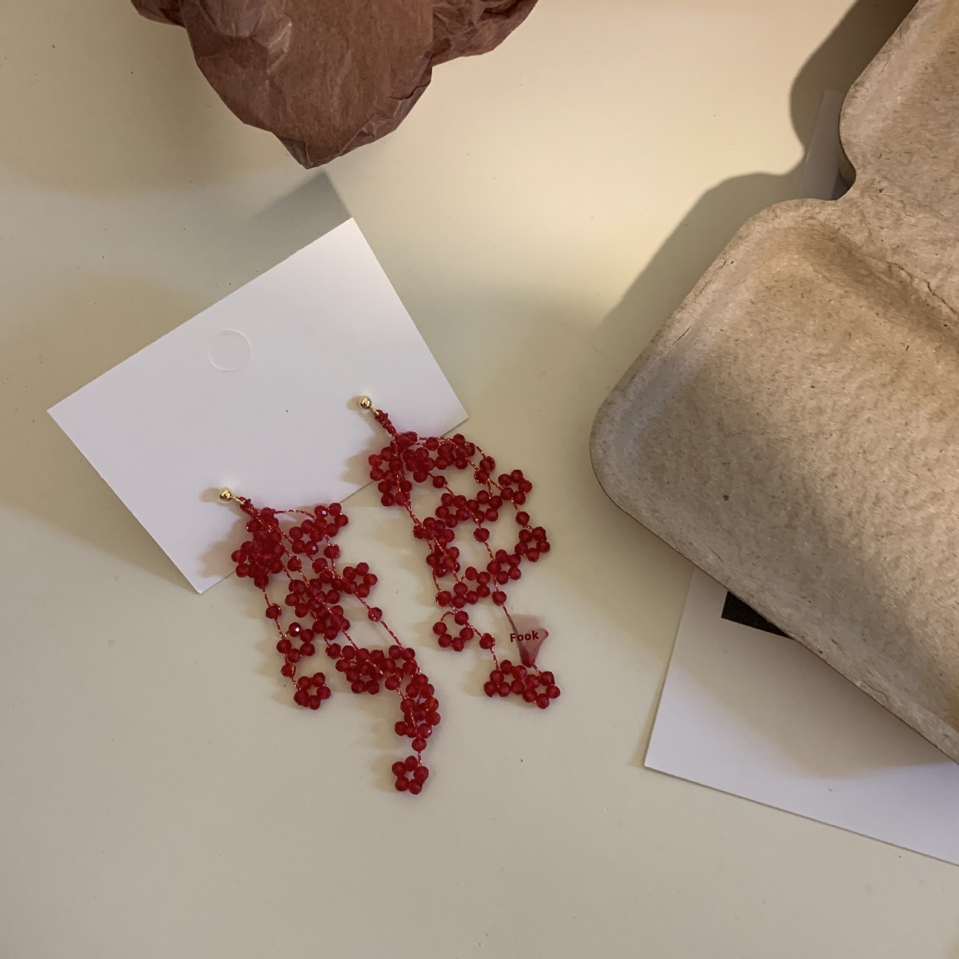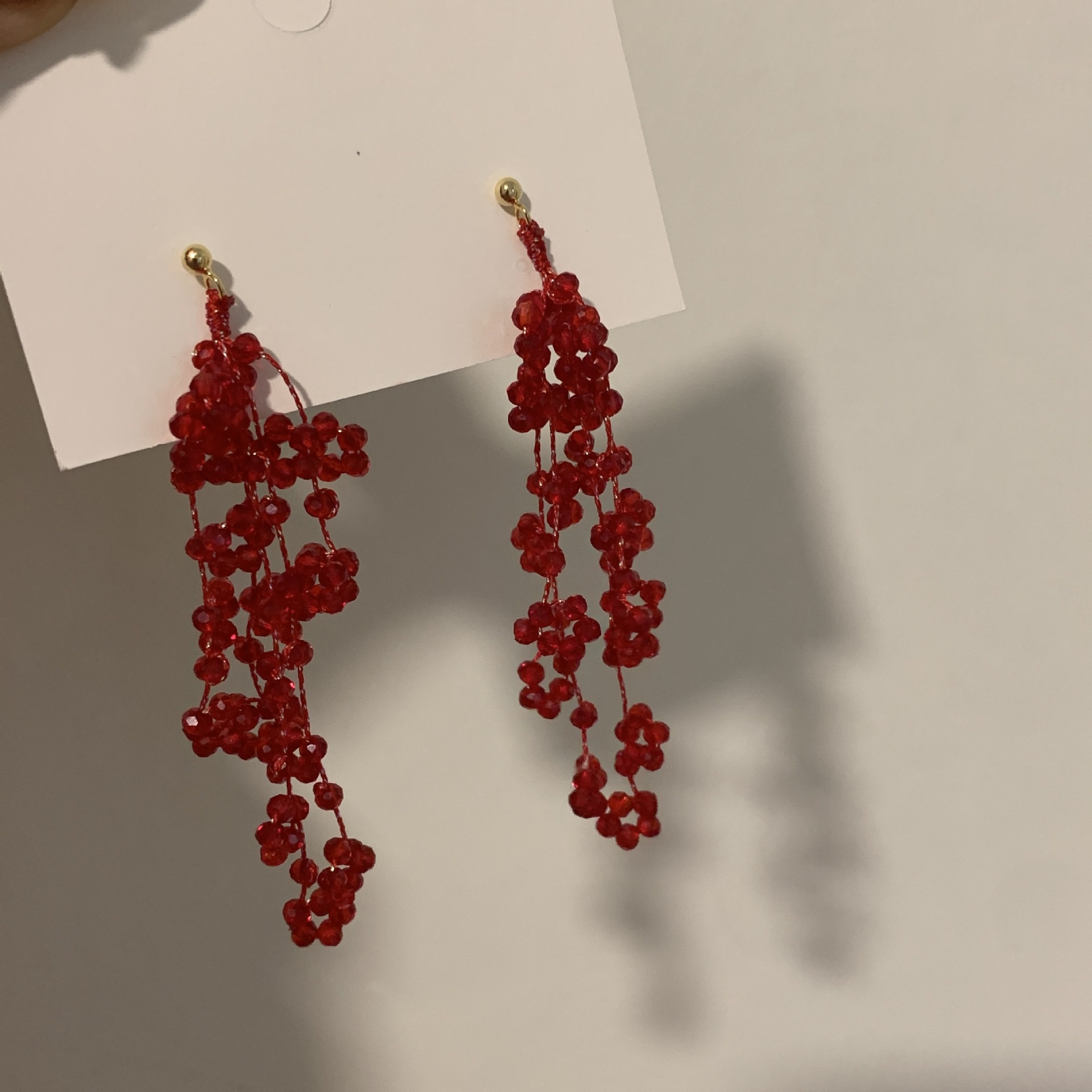Red Retro Beaded Tassel Earrings Women Exaggerated Light Luxury Crystal Elegant Design Wedding Earrings