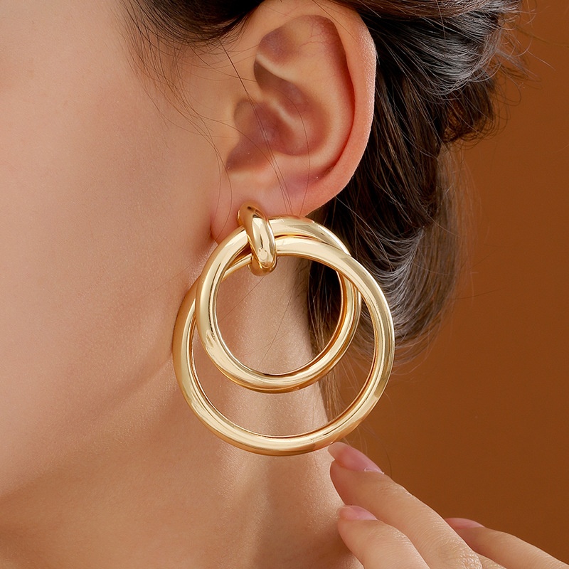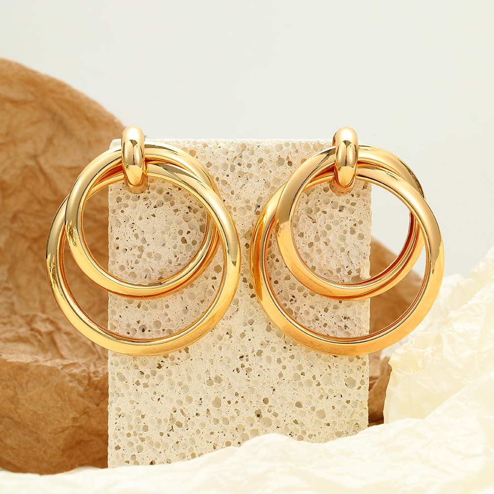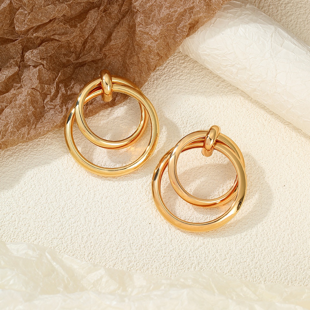 European And American Simple Round Double-ring Earrings Women's Retro Light Luxury High-end Sense Tagram Style Fashionable Elegant Earrings