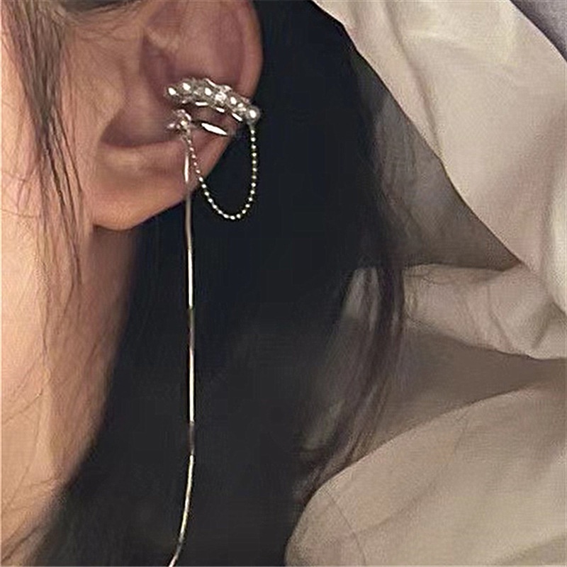 French Niche Designer Super Flash Ear Clip Long Pearl Tassel Ear Clip Light Luxury High-end Earrings