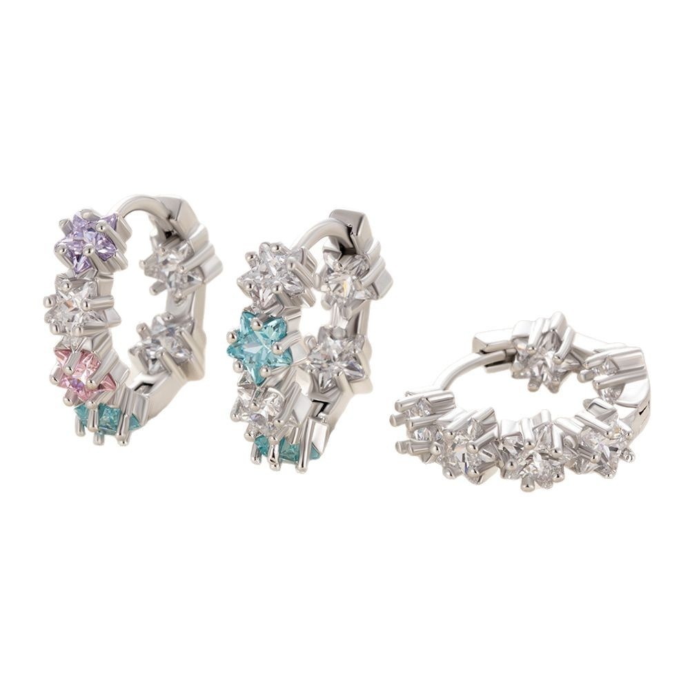 Henson Light Luxury Colorful Five-pointed Star-shaped Zircon Ear Buckle Earrings Sweet Girl Earrings Earrings