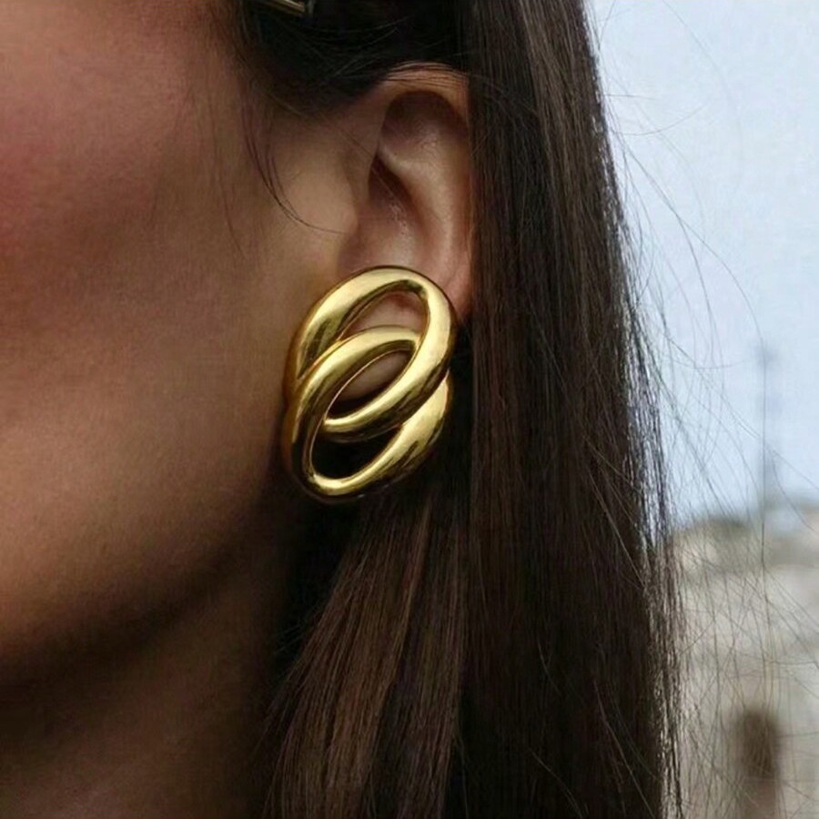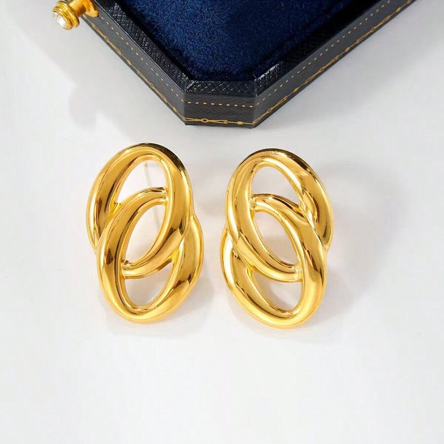 Fashion Stainless Steel Gold Earrings Women's Fashion Personality Simple High-end Sense Design O-ring Earrings