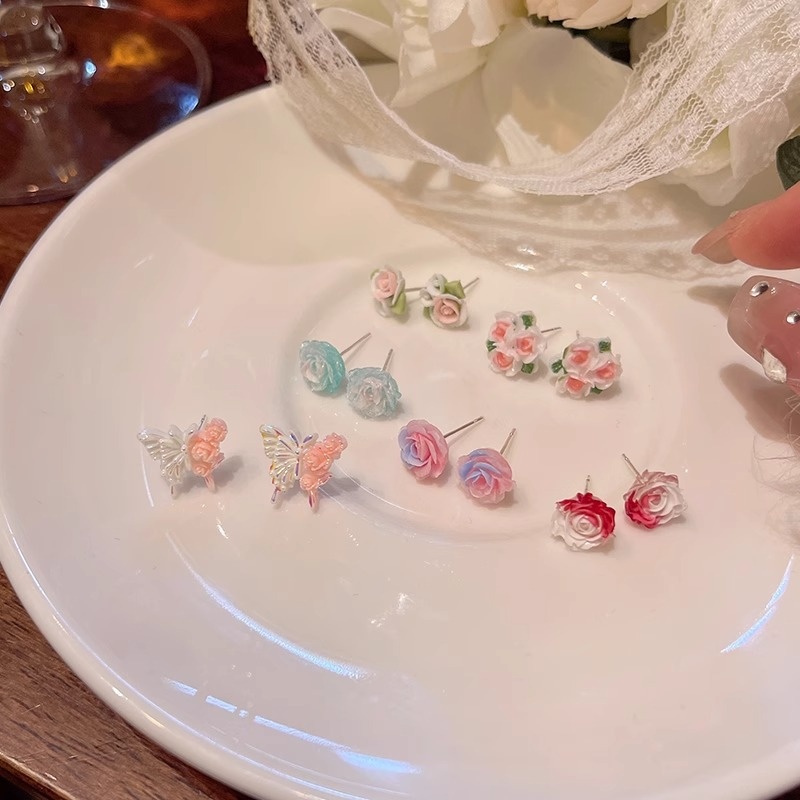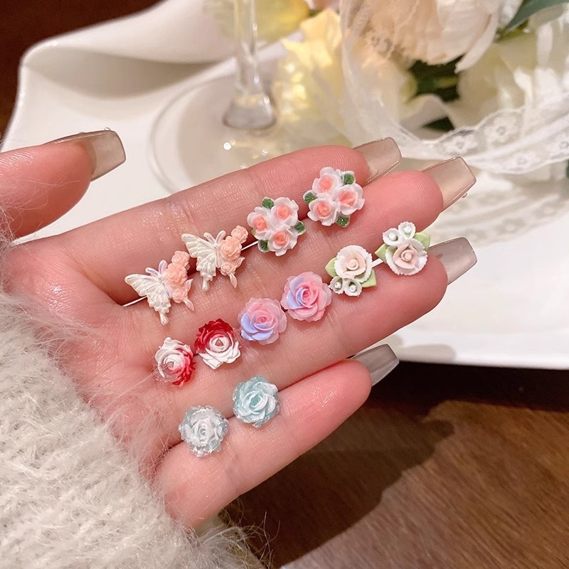 Pink Flower Light Luxury Earrings Women's Cute Sweet Cool Fashion Earrings Niche Arrival Silver Pin Unique Earrings For Women
