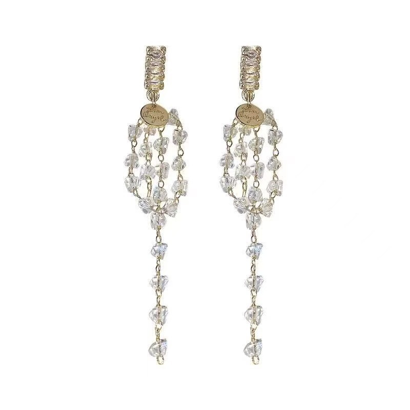 Light Luxury Smart Crystal Long Tassel Earrings Niche Design Fresh And Sweet High-end All-match Exquisite Earrings For Women