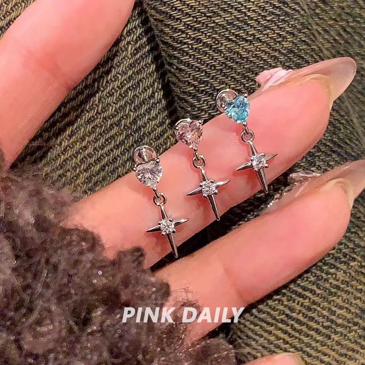 Flash Zirconium Cross Pendant Ear Bone Nail Titanium Steel Niche All-match Awn Star Earrings Free Earrings For Women