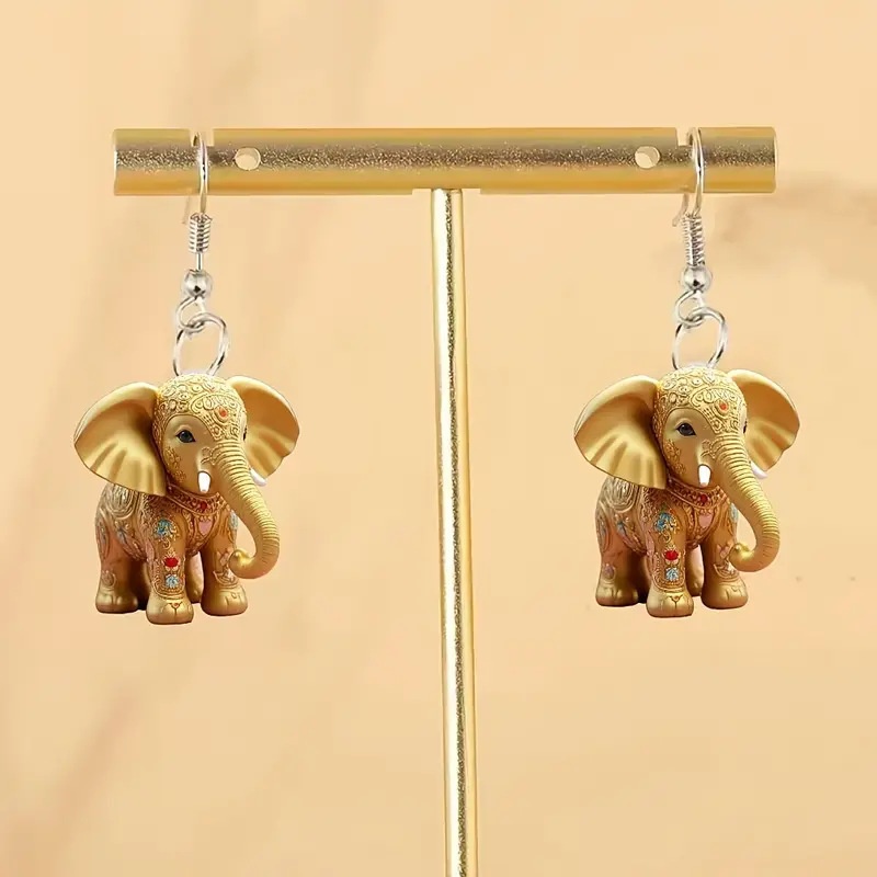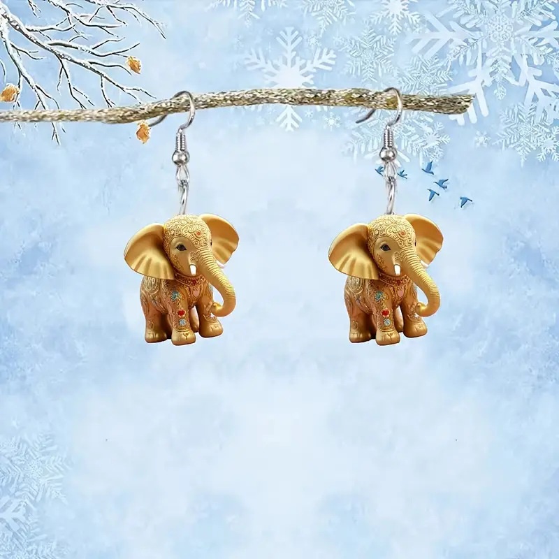 Golden Elephant Acrylic Earrings Symbolic Of Auspicious Year Holiday Earrings