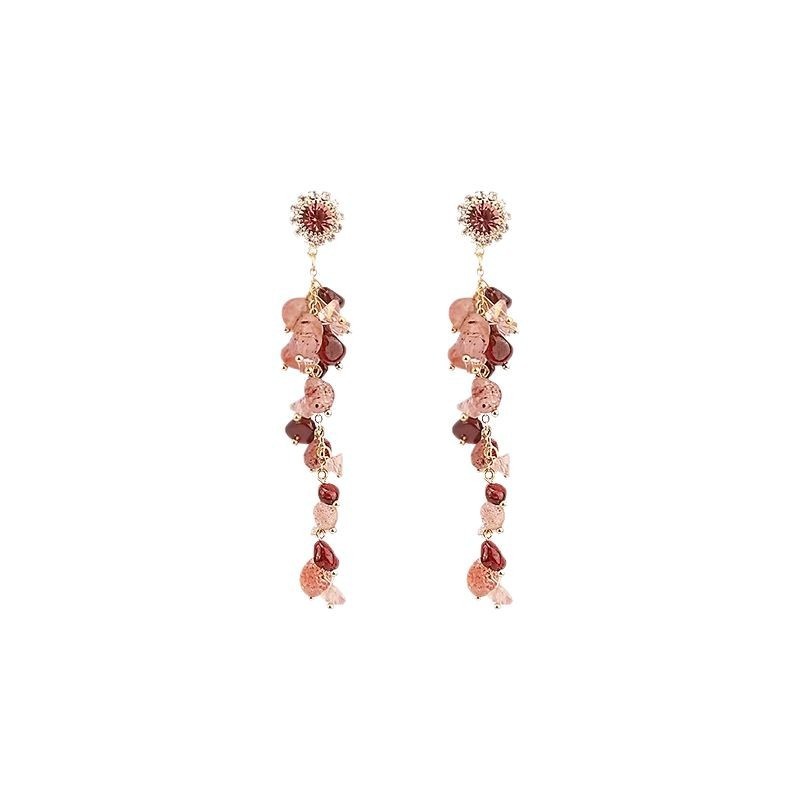Silver Needle Super Fairy Pink Gravel Tassel Earrings Exquisite Temperament Niche Earrings Star High-end Earrings For Women