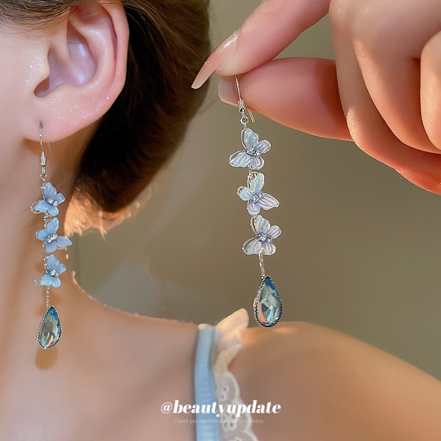 Diamond Butterfly Tassel Water Drop Earrings Summer Seaside Holiday Ear Hook Ear Drop Elegant Earrings Design Sense Niche