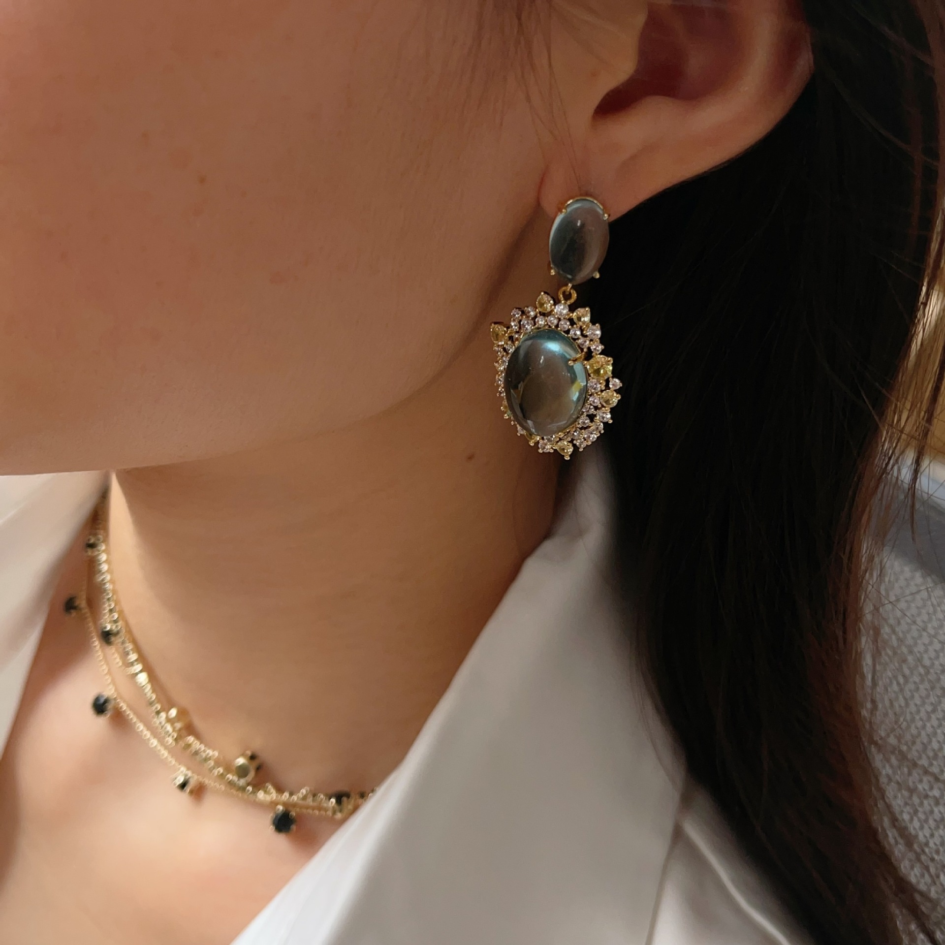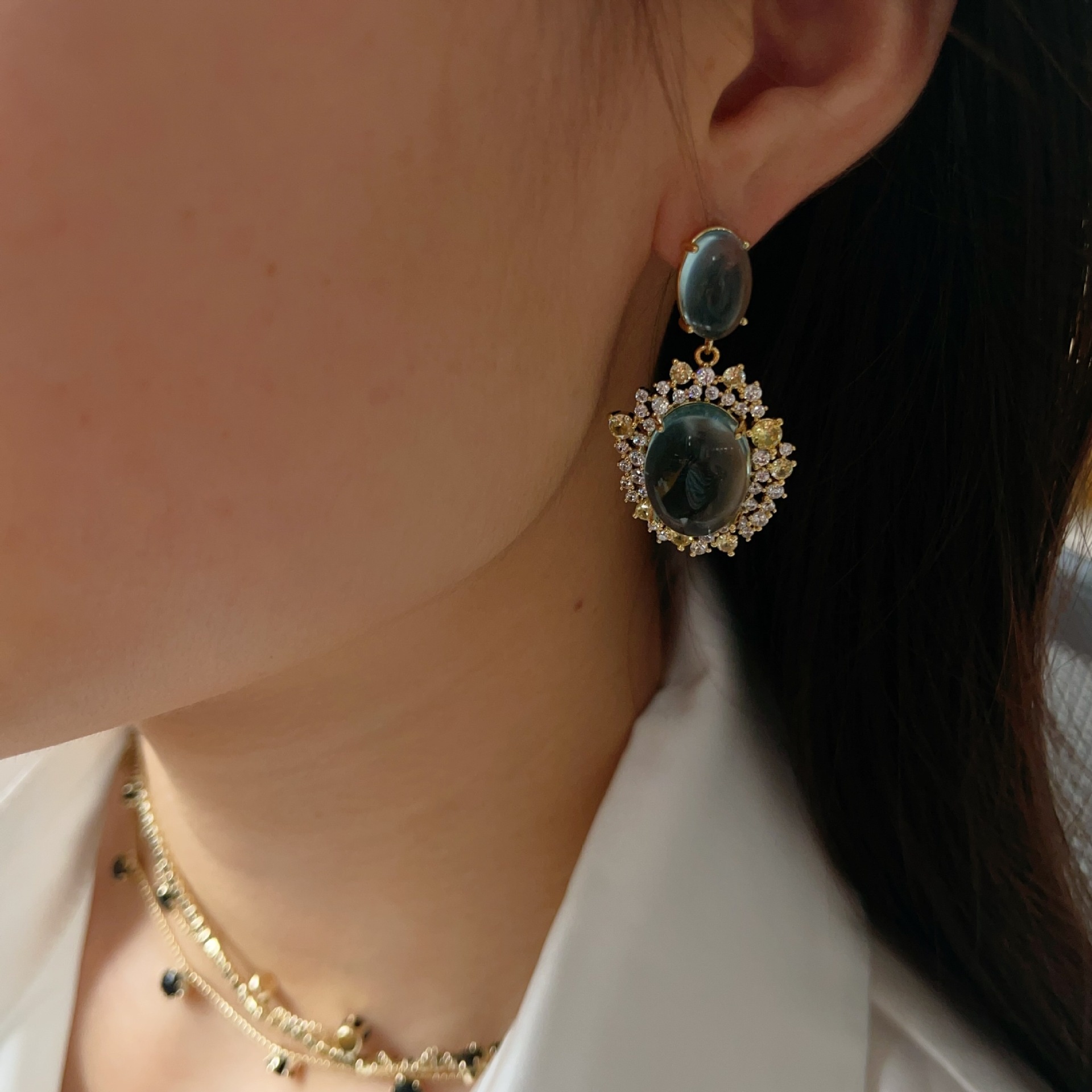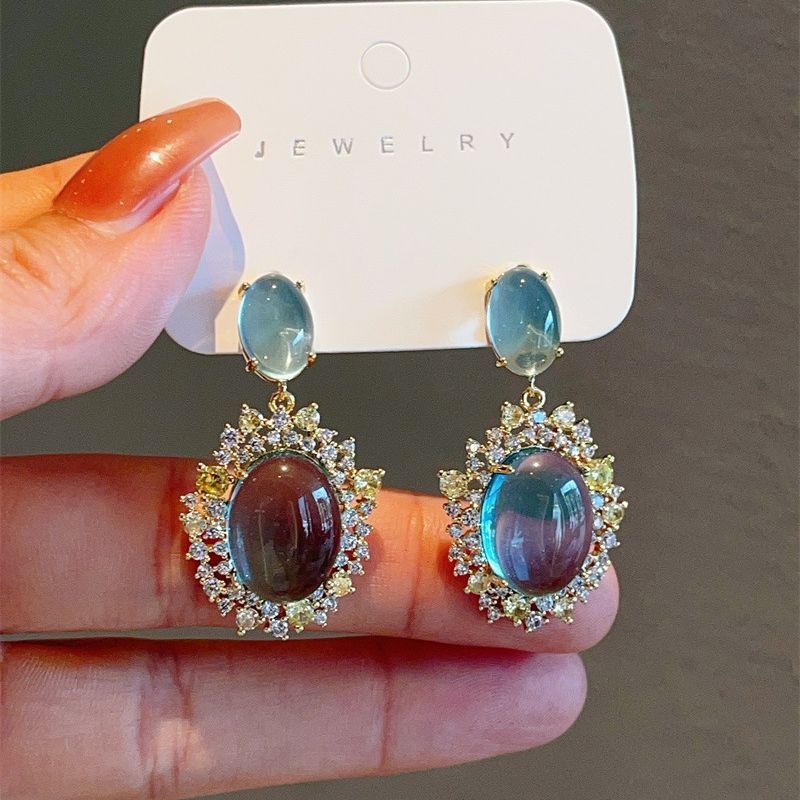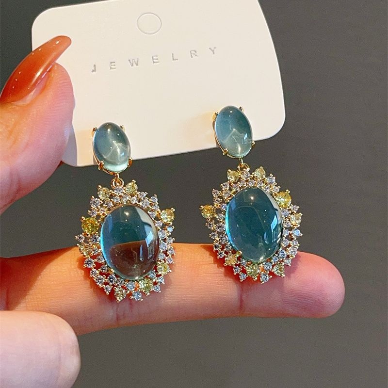 Light Luxury Heavy Industry Mint Blue Opal Zircon Earrings Retro High-grade Temperament Gem Earrings Ear Jewelry