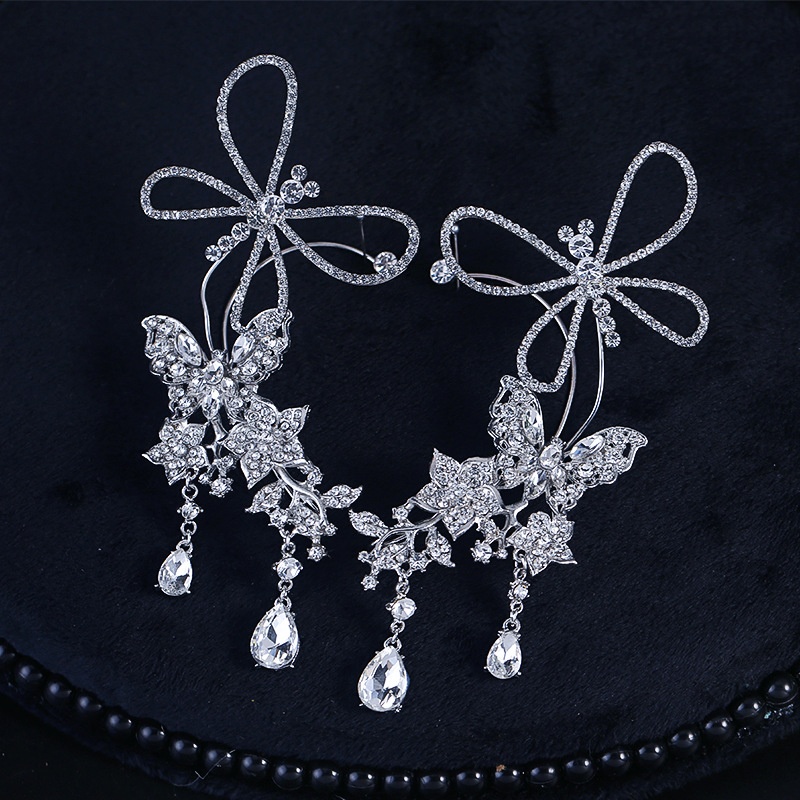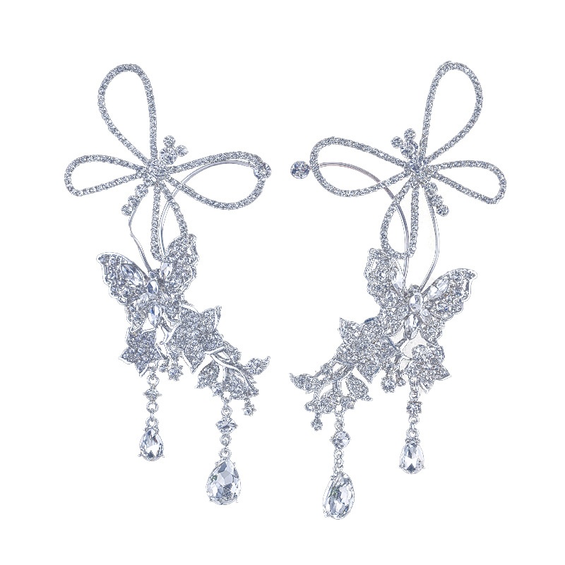 Bride Earrings Heavy Industry All-match Gorgeous Butterfly Earrings Ear Hanging Smart Earrings Wedding Clothing Accessories Makeup Accessories Light Luxury