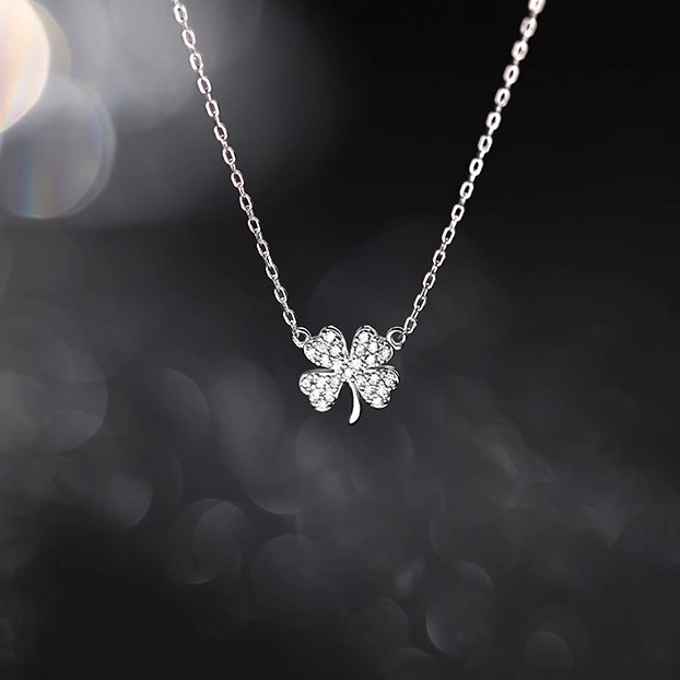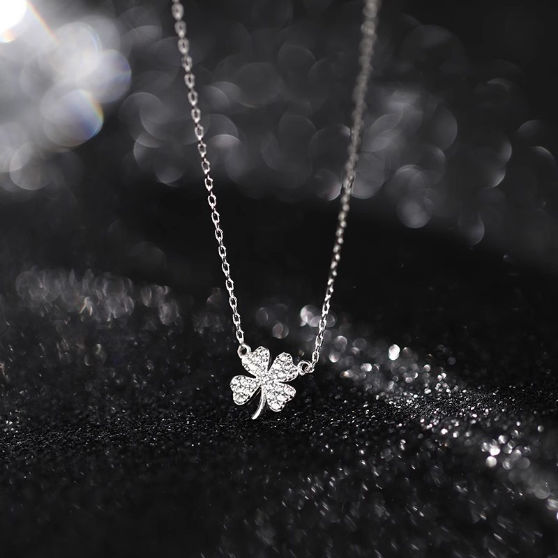 Korean Version Of Diamond-encrusted Lucky Four-leaf Clover Necklace Women's Niche Light Luxury Design Japanese And Korean-style Net Red Temperament Clavicle Chain