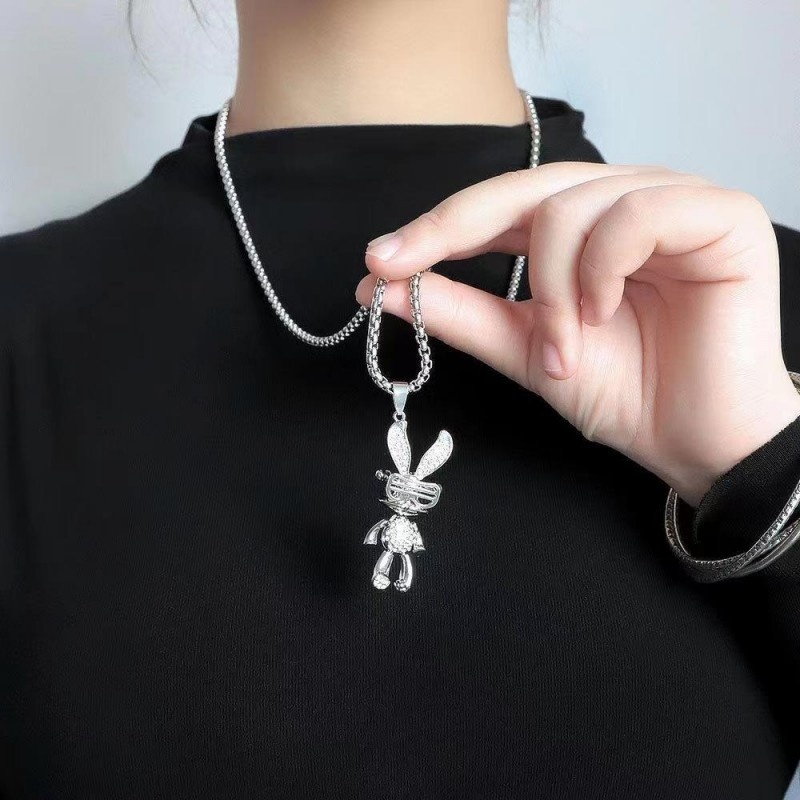 Fashion Cool Full Diamond Rabbit Necklace Women Simple Fashion Hip Hop Pendant Joker Long Sweater Chain S
