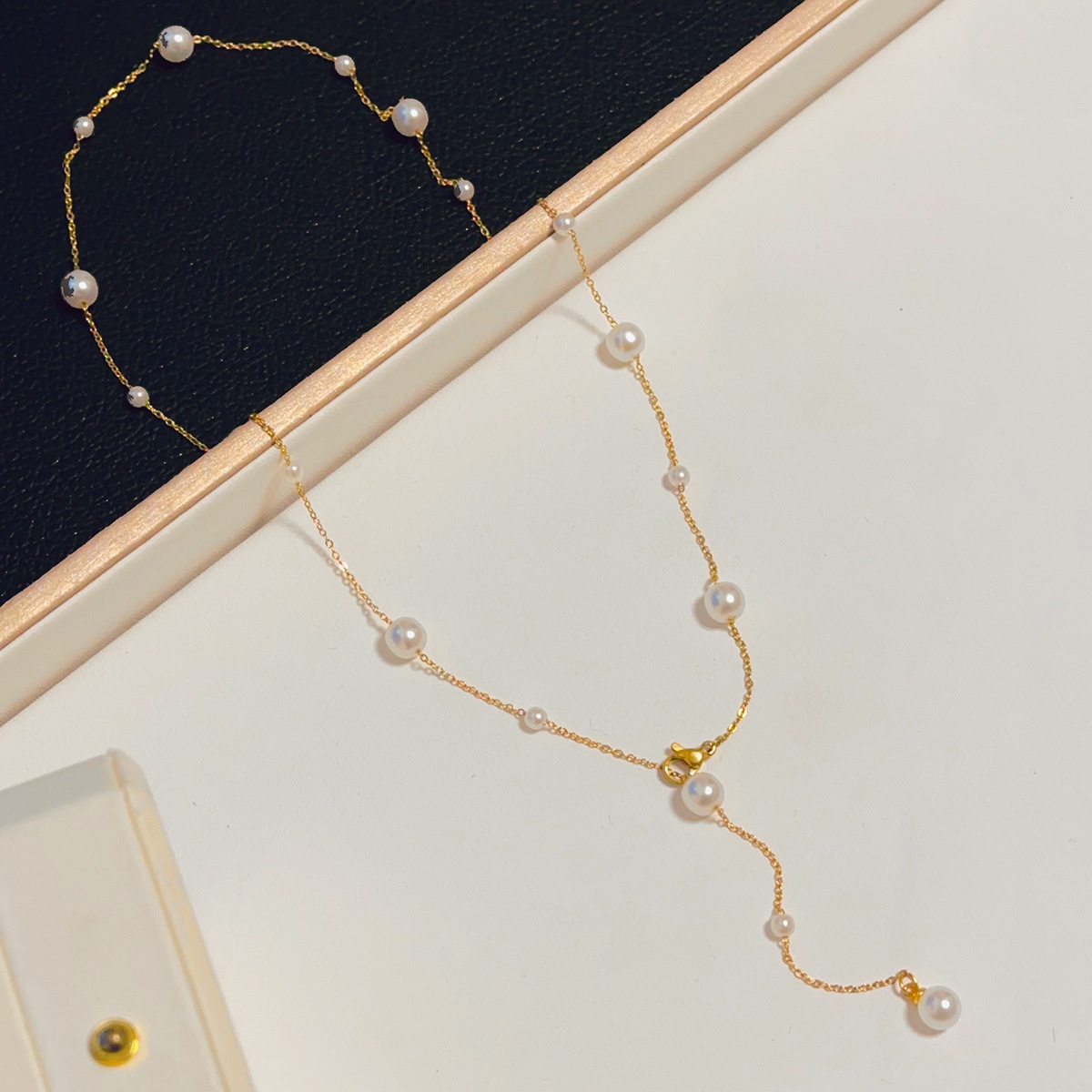 French Style Light Luxury High-end Imitation Pearl Stacked Necklace Women's Tassel Adjustable All-match Sexy Collarbone Chain Design Sense