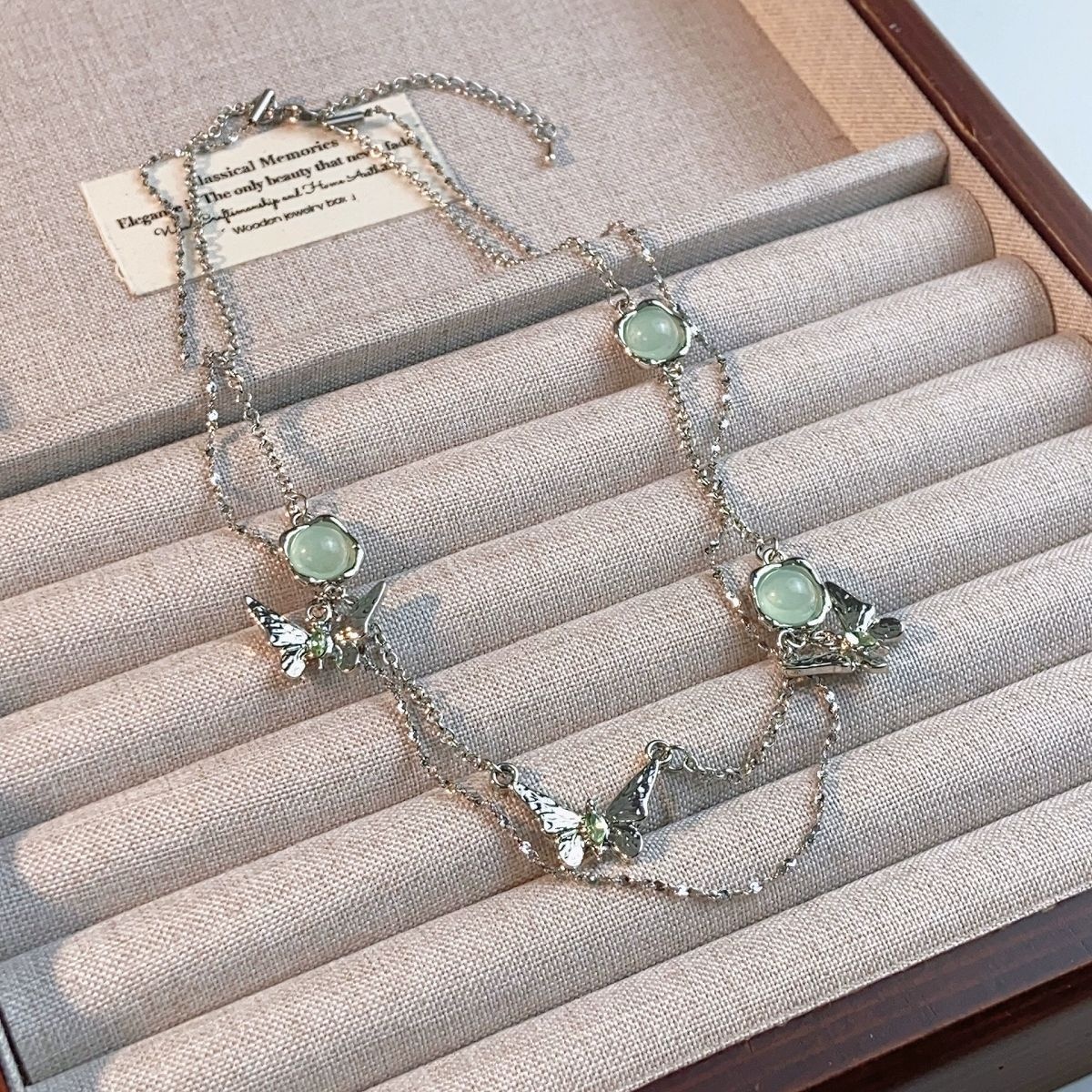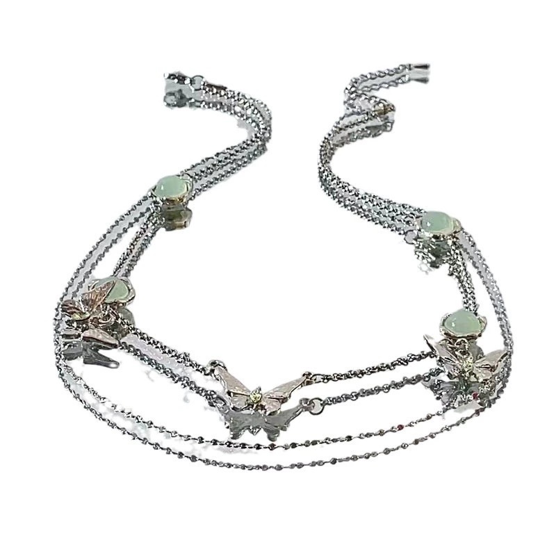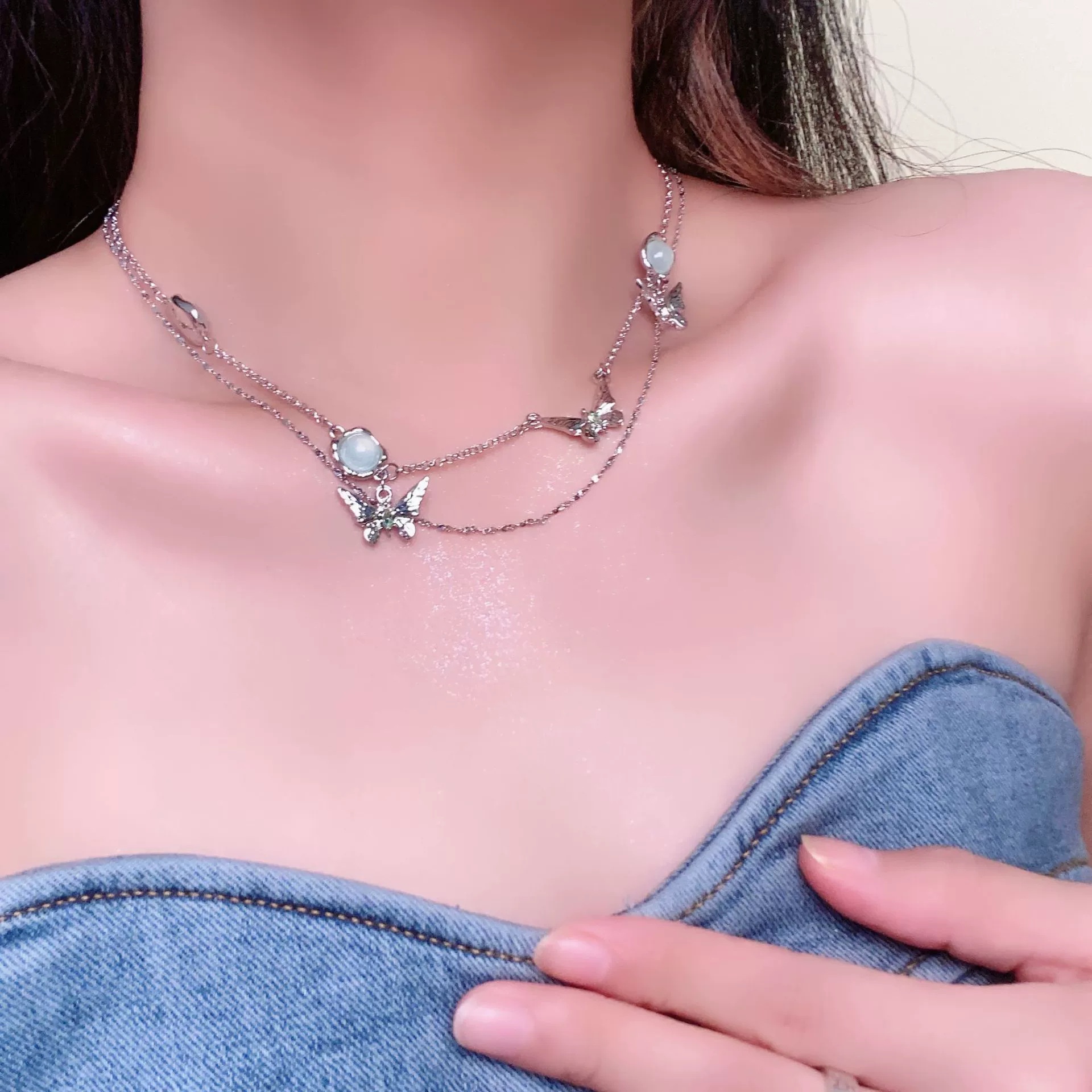 Sweet Cool Style Butterfly Pendant Double Layer Stacked Necklace Women's Niche Design Sense Fashion All-match High-end Necklace