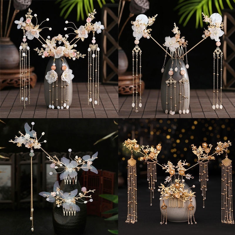 Hanfu Headwear Tassel Hairpin Step Shake Hairpin Classical Fair Price Ming-made Ancient Clothing Accessories Antique Hair Accessories Full Set Of Hair Crown