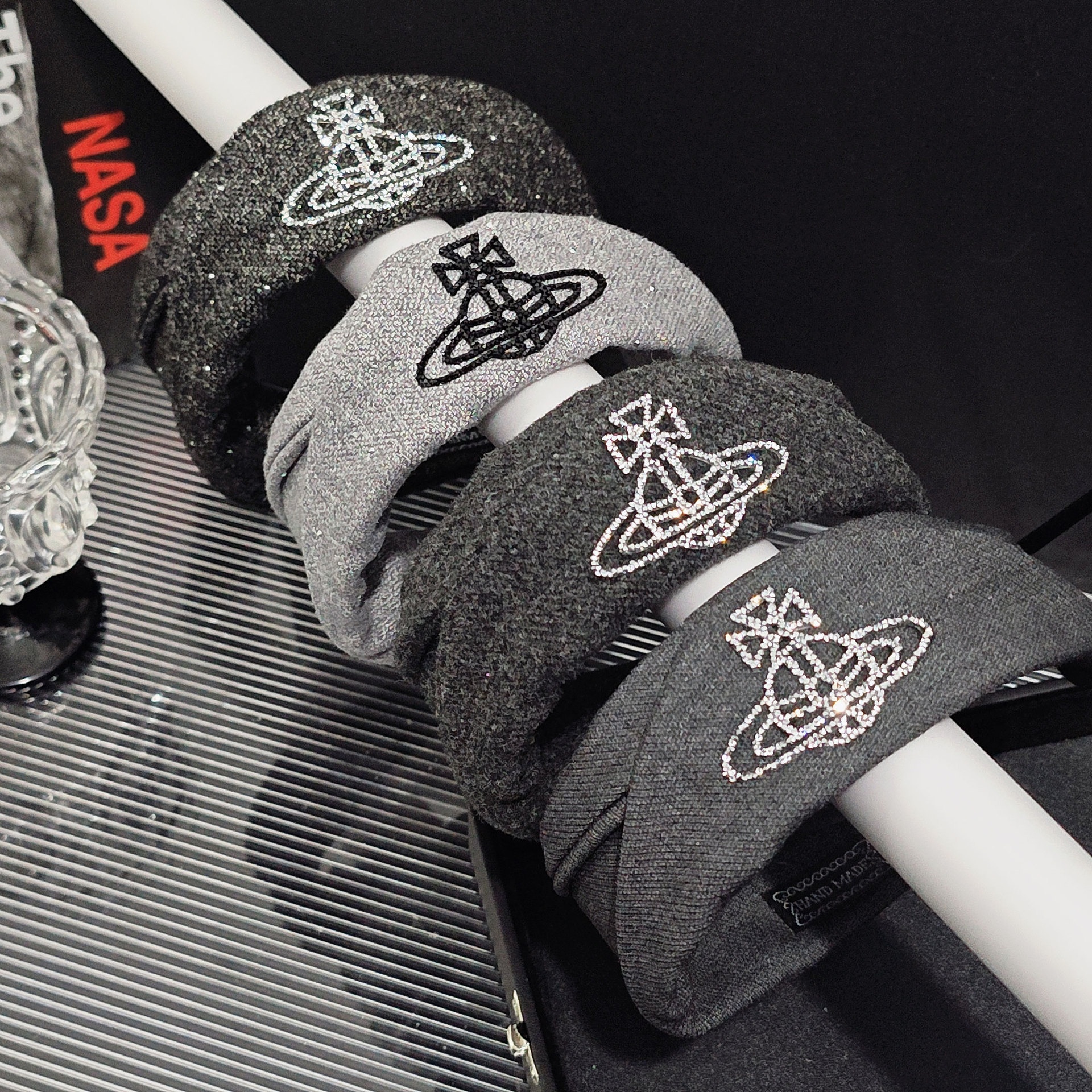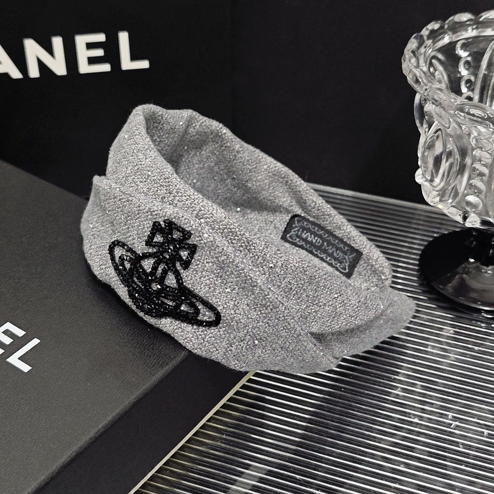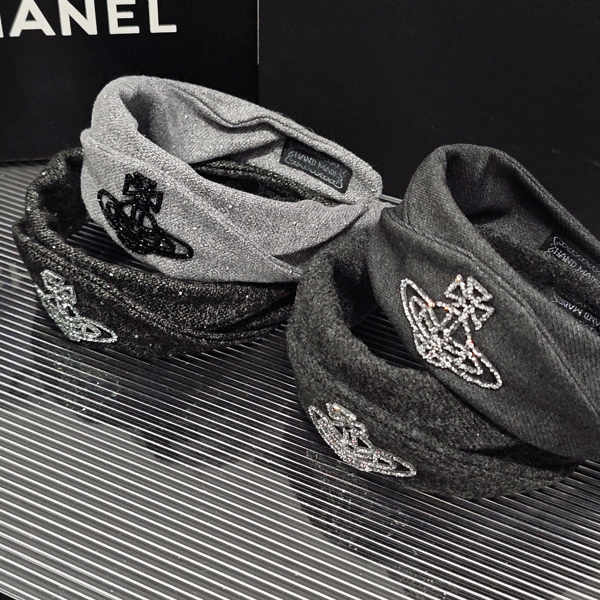 Style Chanel Flash Diamond Saturn Wide Edge Headband Gray Hong Kong-style High-end Retro Elegant Headband Artifact